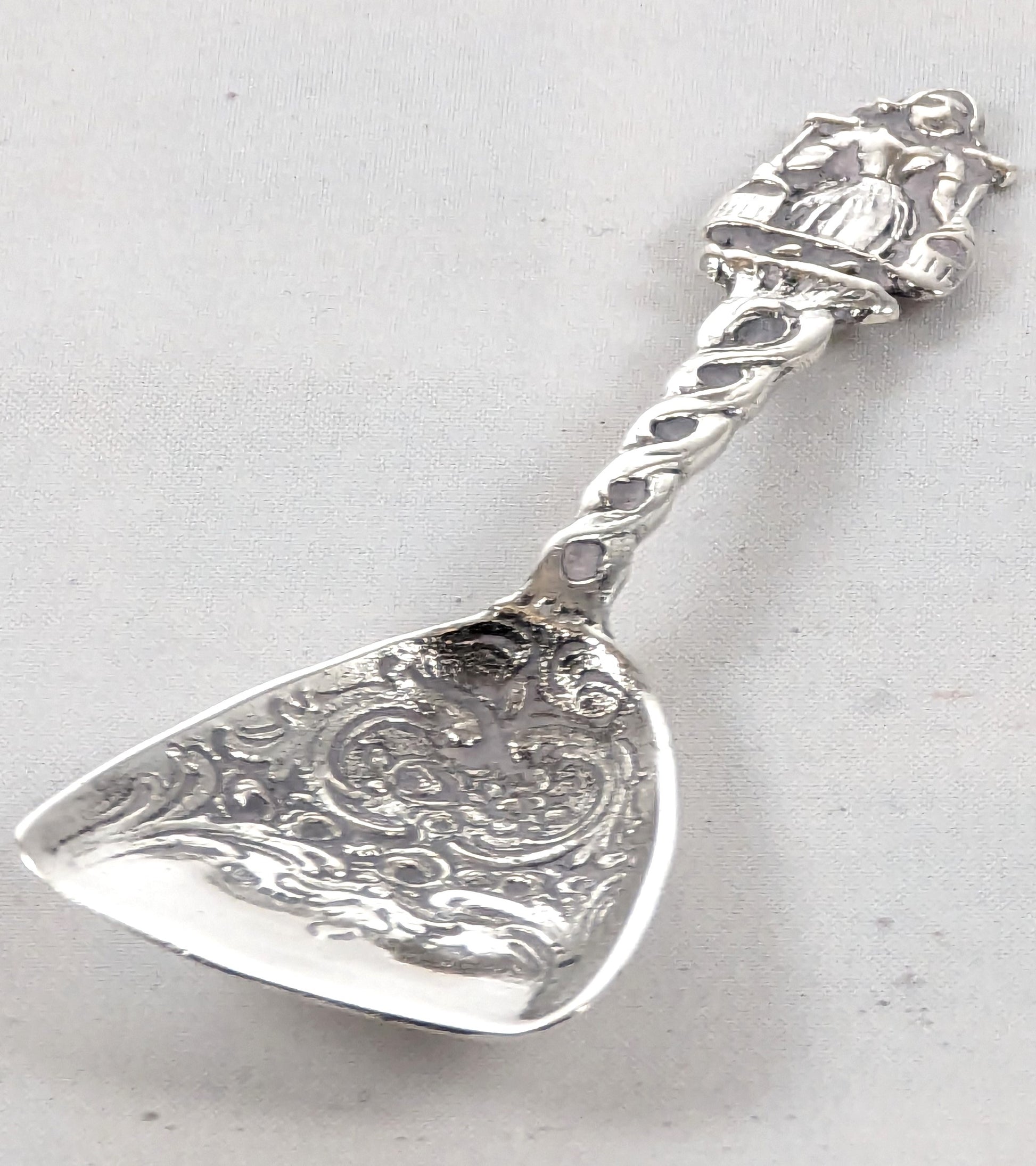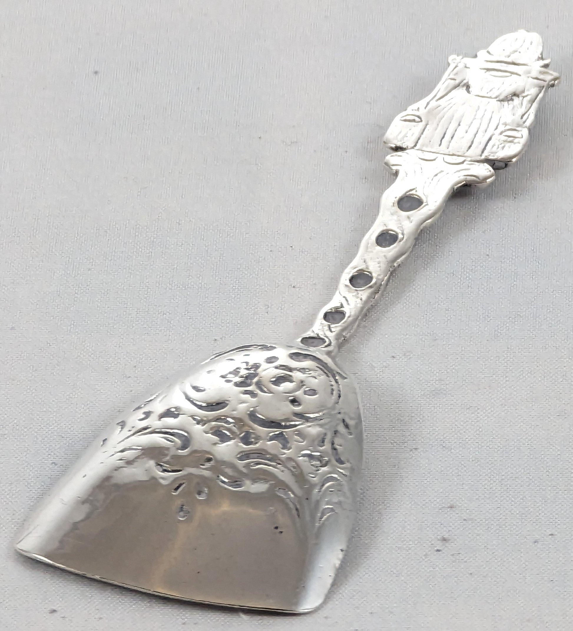 Introducing our Antique Solid Silver Dutch Caddy Spoon - a true treasure that will transport you to the enchanting world of Dutch craftsmanship! This whimsical piece is as delightful as it is practical, making it the perfect addition to your collection or a unique utensil for your everyday use.