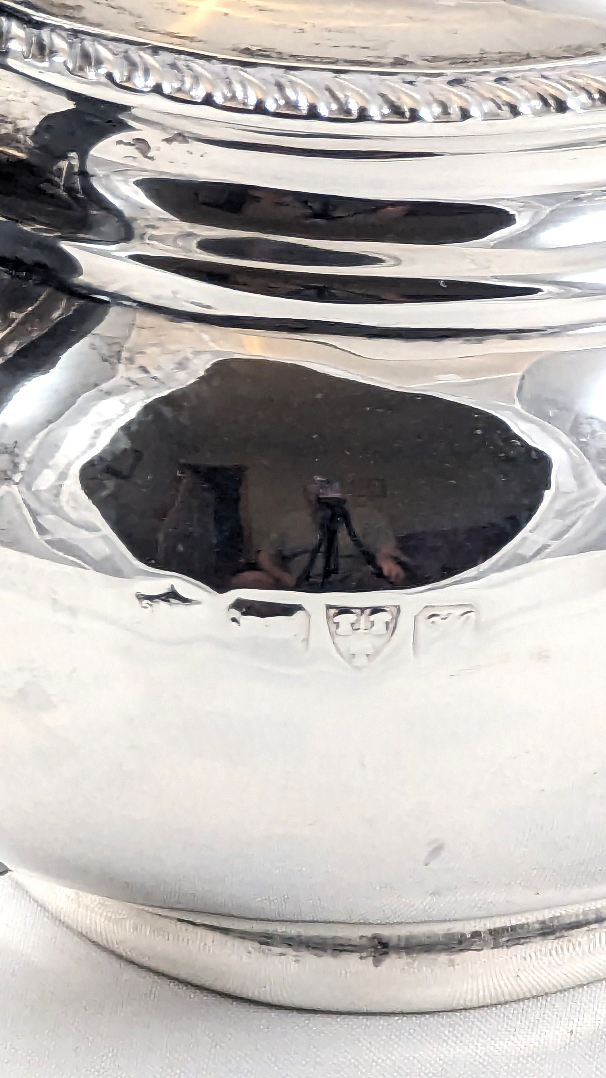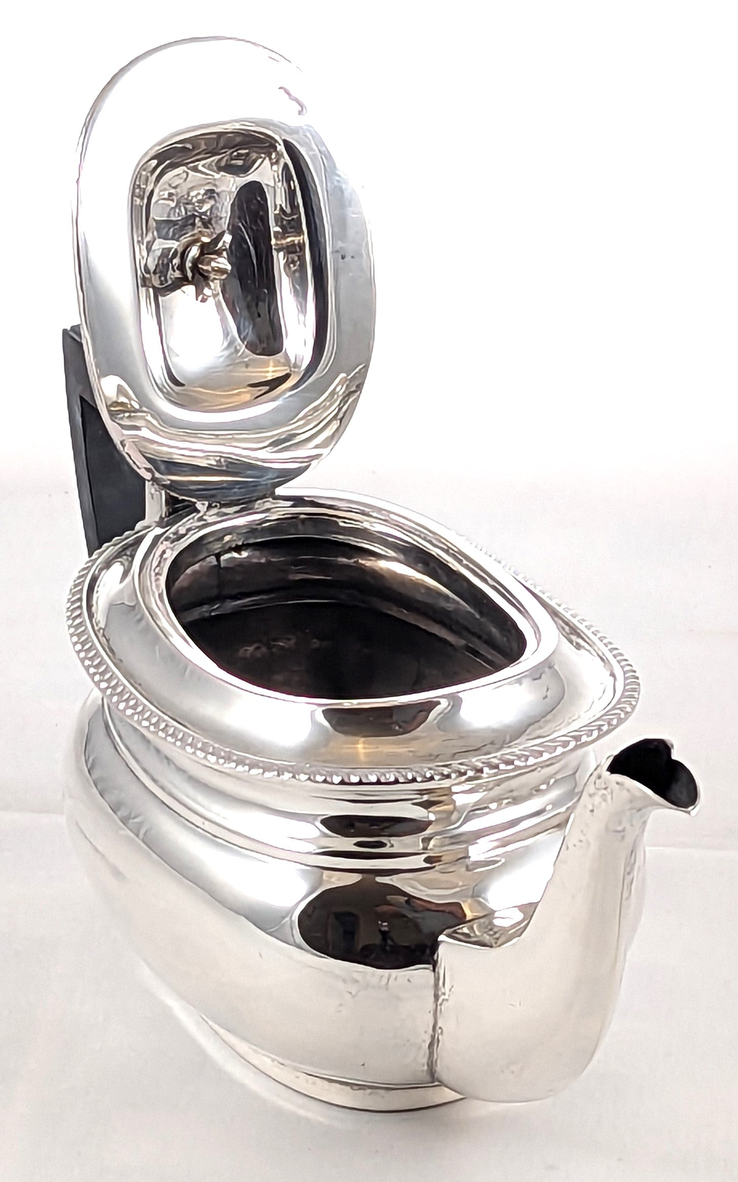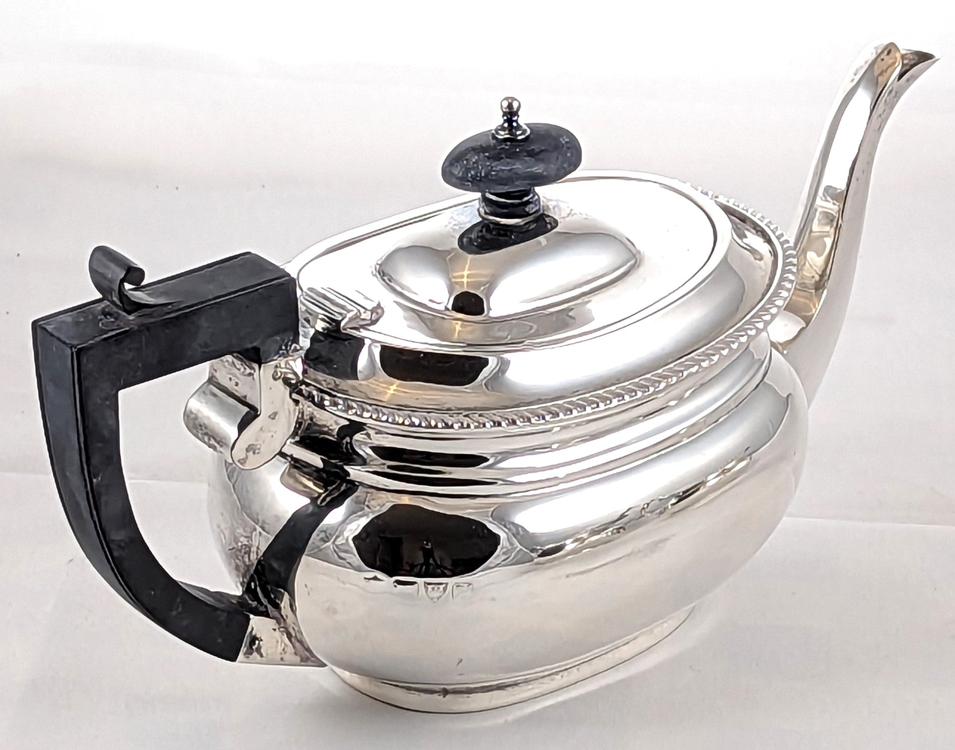 Immerse yourself in the allure of Victorian charm as you savor the rich aroma of your favorite tea, poured from the majestic teapot. Its lustrous sterling silver body, expertly crafted in Birmingham, England in 1910, exudes an air of opulence. The teapot's ebony wood handle and finial add a touch of contrast, creating a visual symphony of elegance.