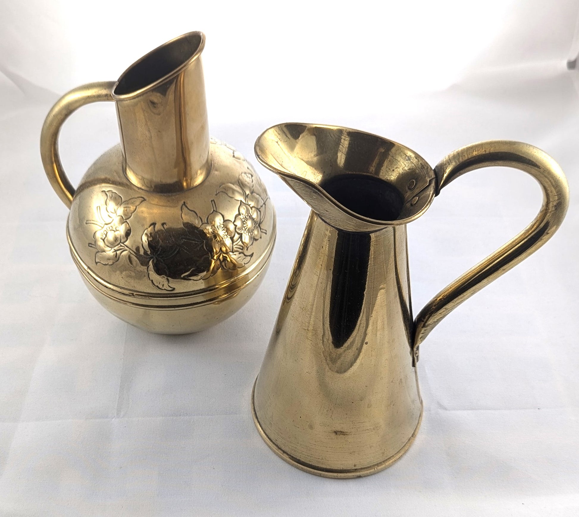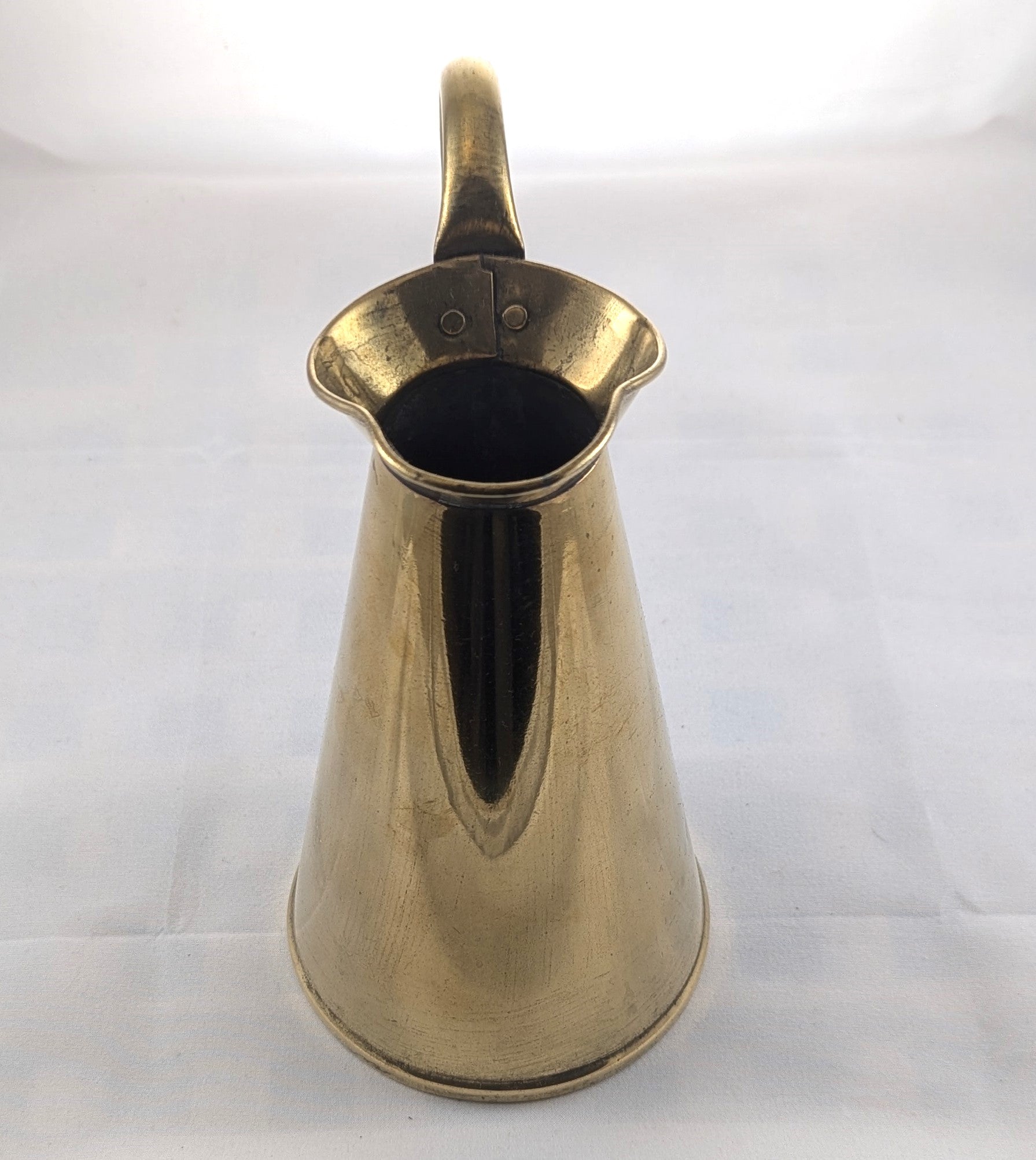 Behold the enchanting allure of our Brass Milk/Water Jugs, a remarkable pair that beckons to the heart of antiquity. In this elegant ensemble, ye shall find both beauty and history, crafted with painstaking care by the illustrious H. Loveridge and Co of Wolverhampton, a name resonating through the halls of time, for their factory ceased its noble service in the year of our Lord 1927.
