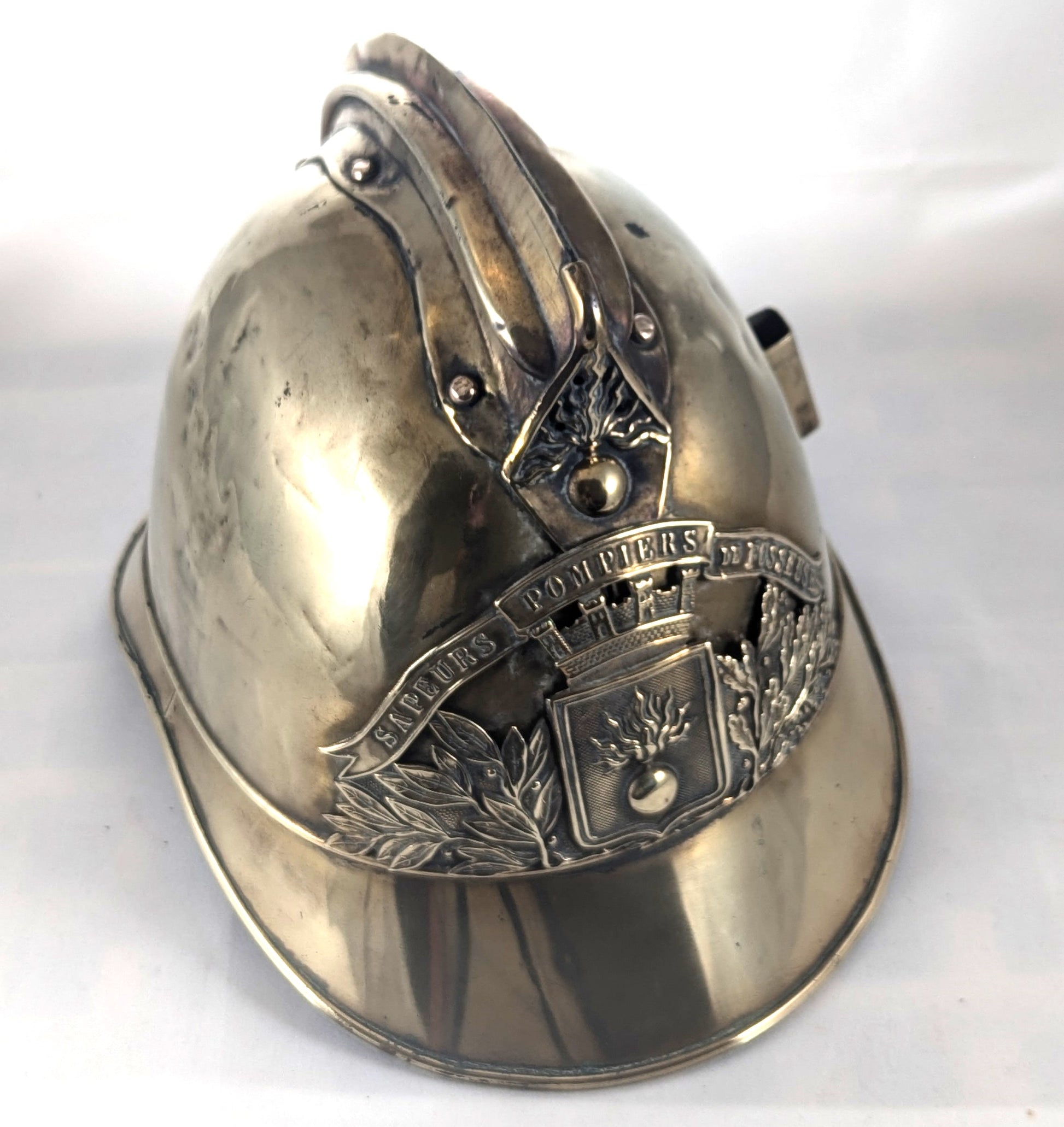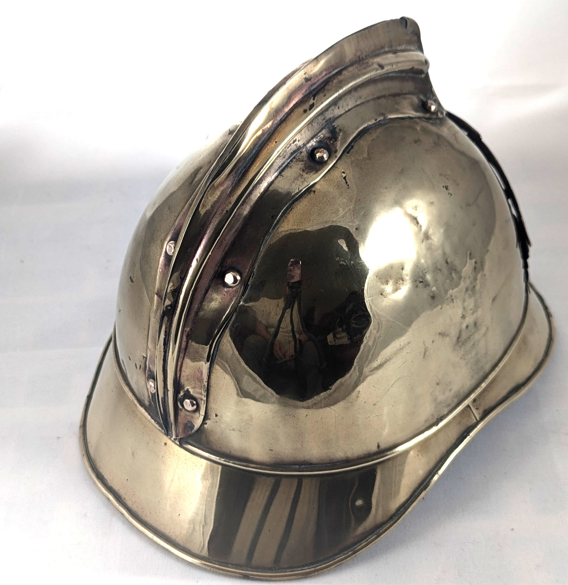 Introducing the exquisite French Sapeurs Pompiers De Fosseuse Fireman's Helmet, a stunning piece that encapsulates the rich history and tradition of fire-fighting in France during the late 19th century. This original brass helmet stands as a testament to the craftsmanship of its time, making it an exceptional addition to any collection.
