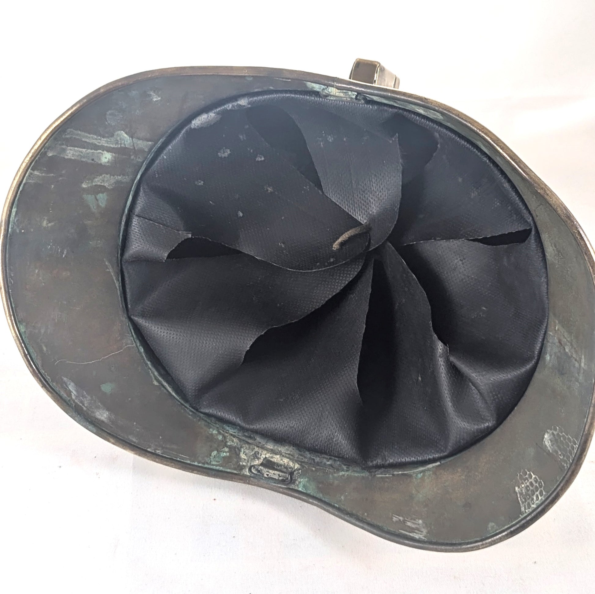 With a remarkable height of 20cm and a circumference of 23cm, this helmet has been meticulously preserved, featuring its original lining that speaks to its authenticity. Despite the absence of the strap and plume, its well-maintained condition radiates elegance and nostalgia, shining beautifully and drawing attention in any display.