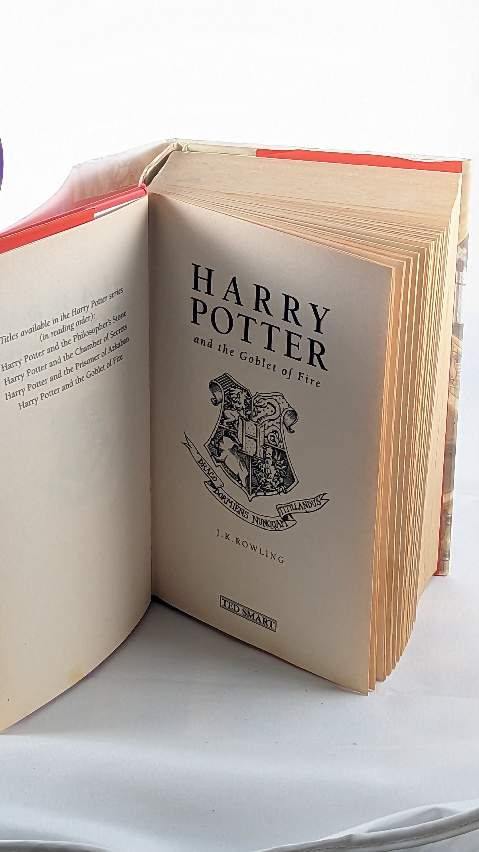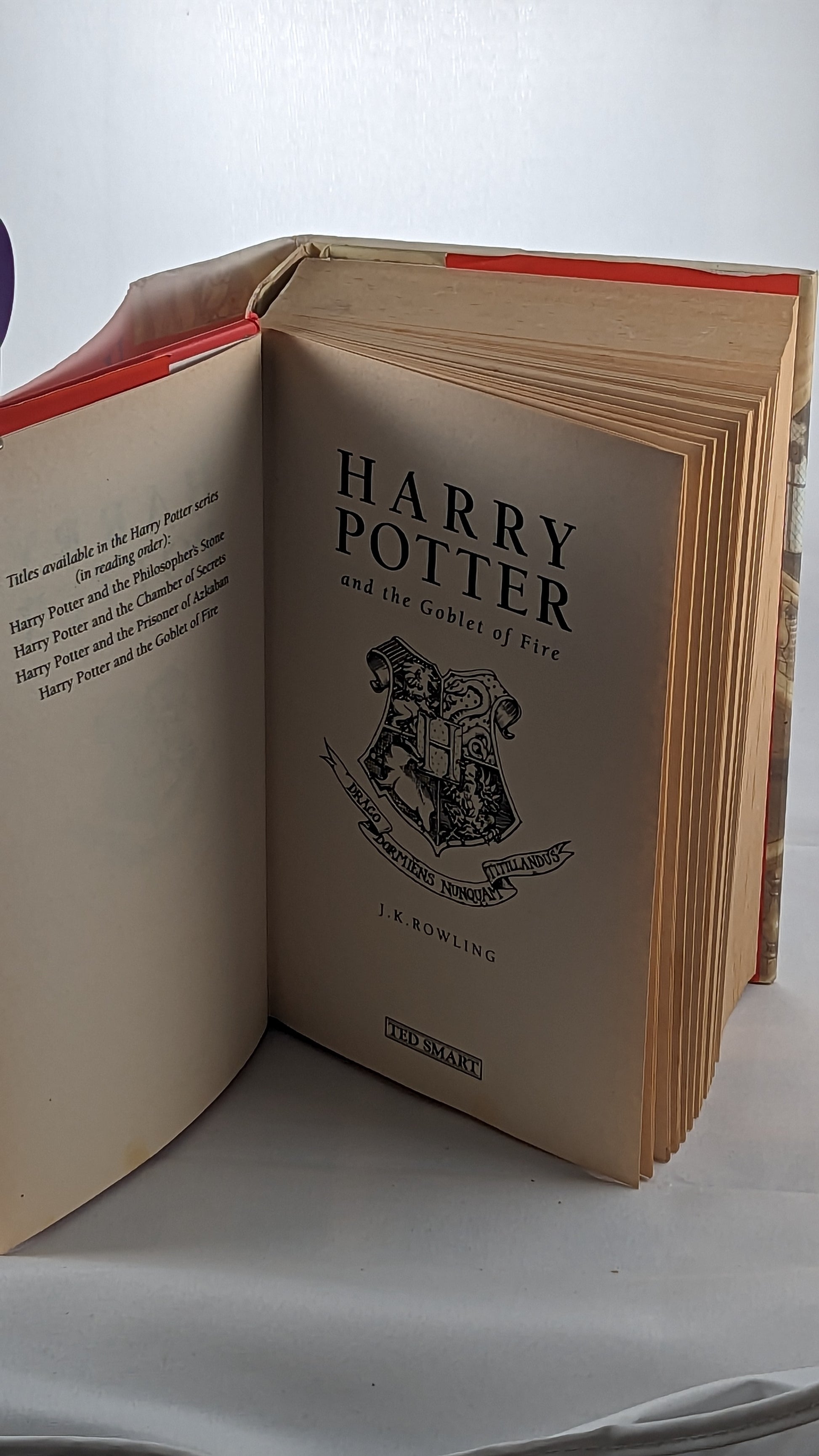 Step into the enchanting world of Harry Potter with this extraordinary gem - a rare First Edition First Print of "Harry Potter and the Goblet of Fire" by publishers Ted Smart. Imagine holding in your hands a piece of literary history, a near perfect condition copy that will transport you straight to the magical realm of Hogwarts.