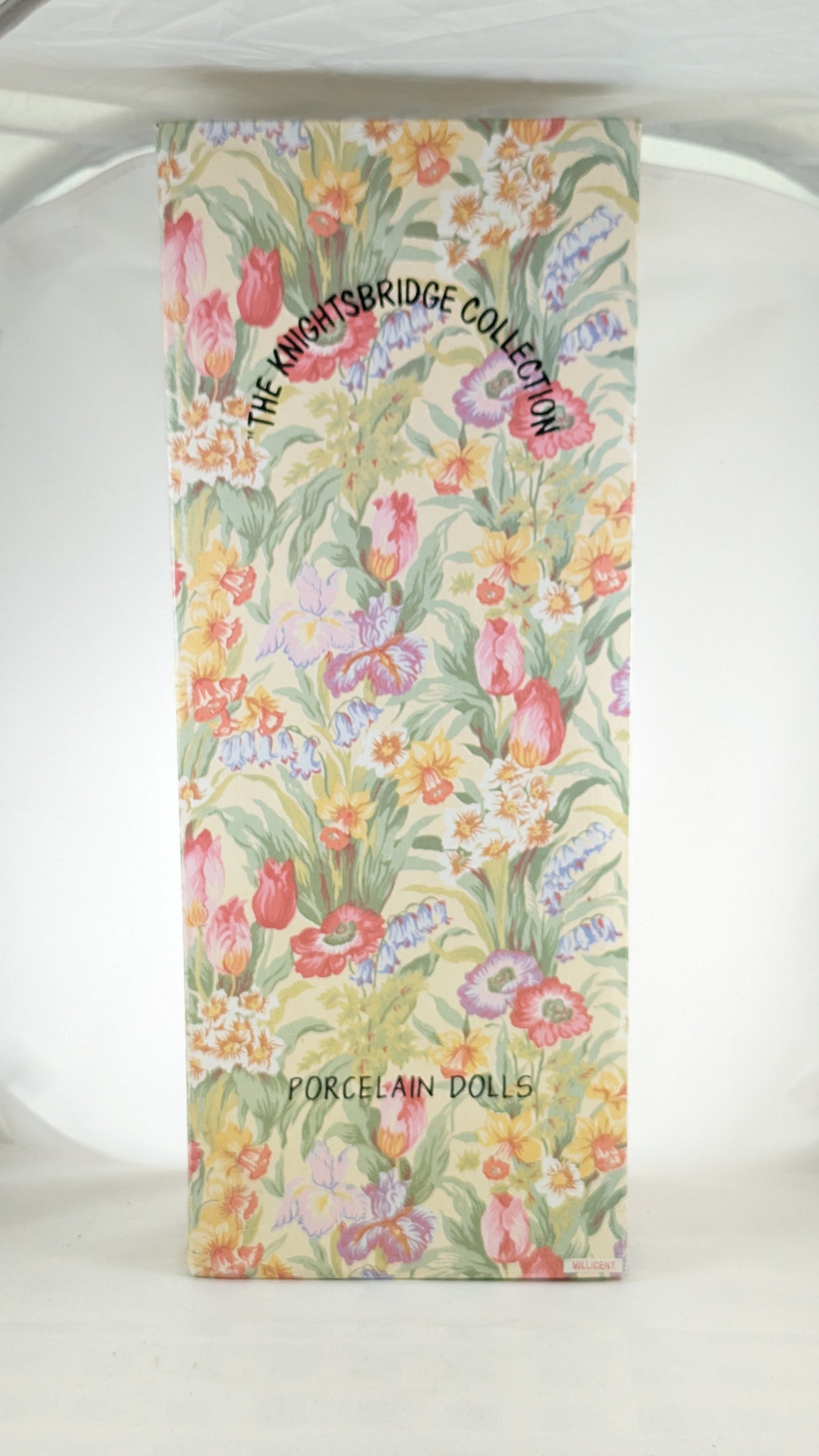Introducing the enchanting Millicent from the Knightsbridge Collection! Straight from the picturesque town of Kent, England, this 18" porcelain doll is ready to steal your heart with her timeless beauty and whimsical charm.