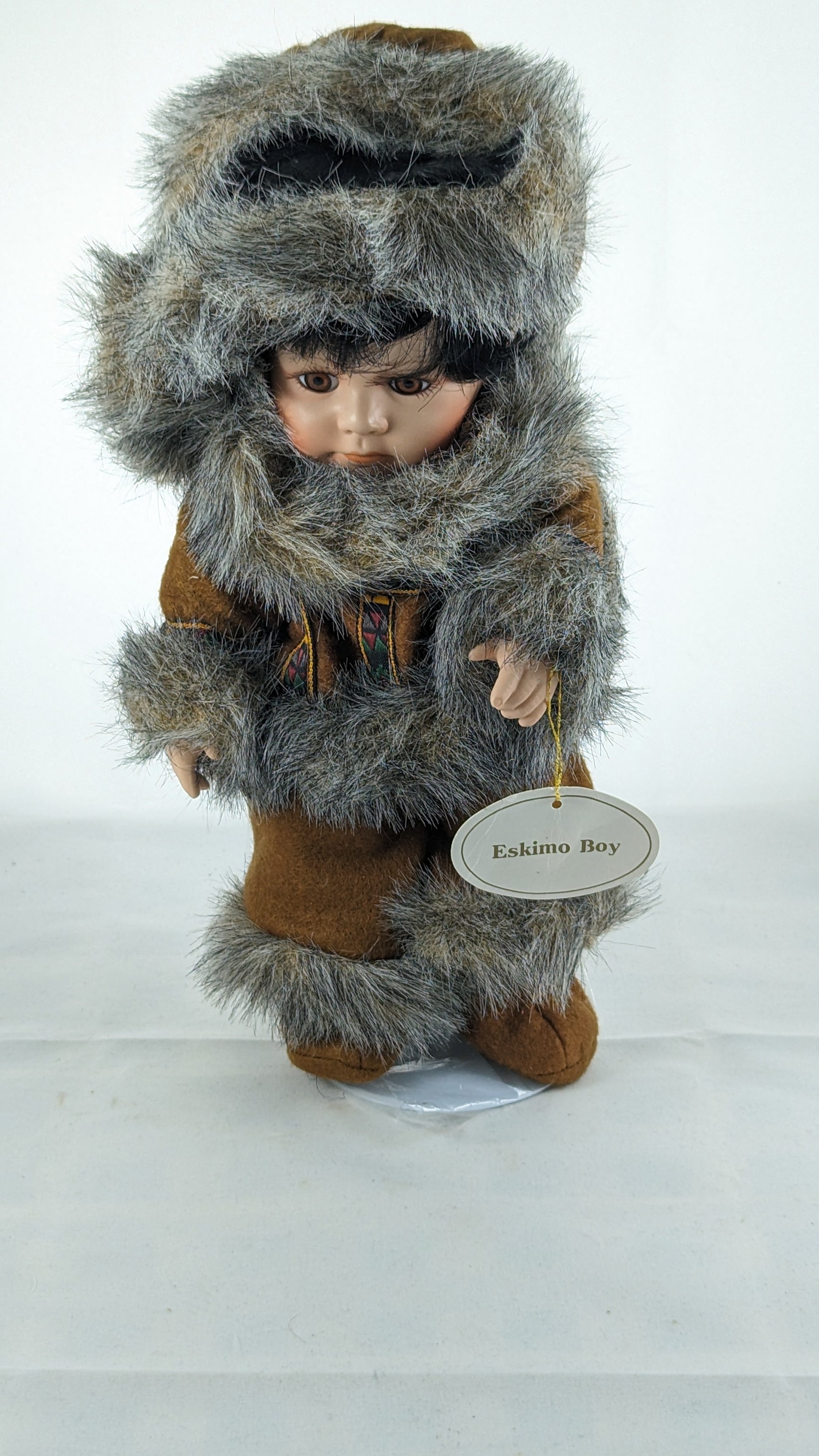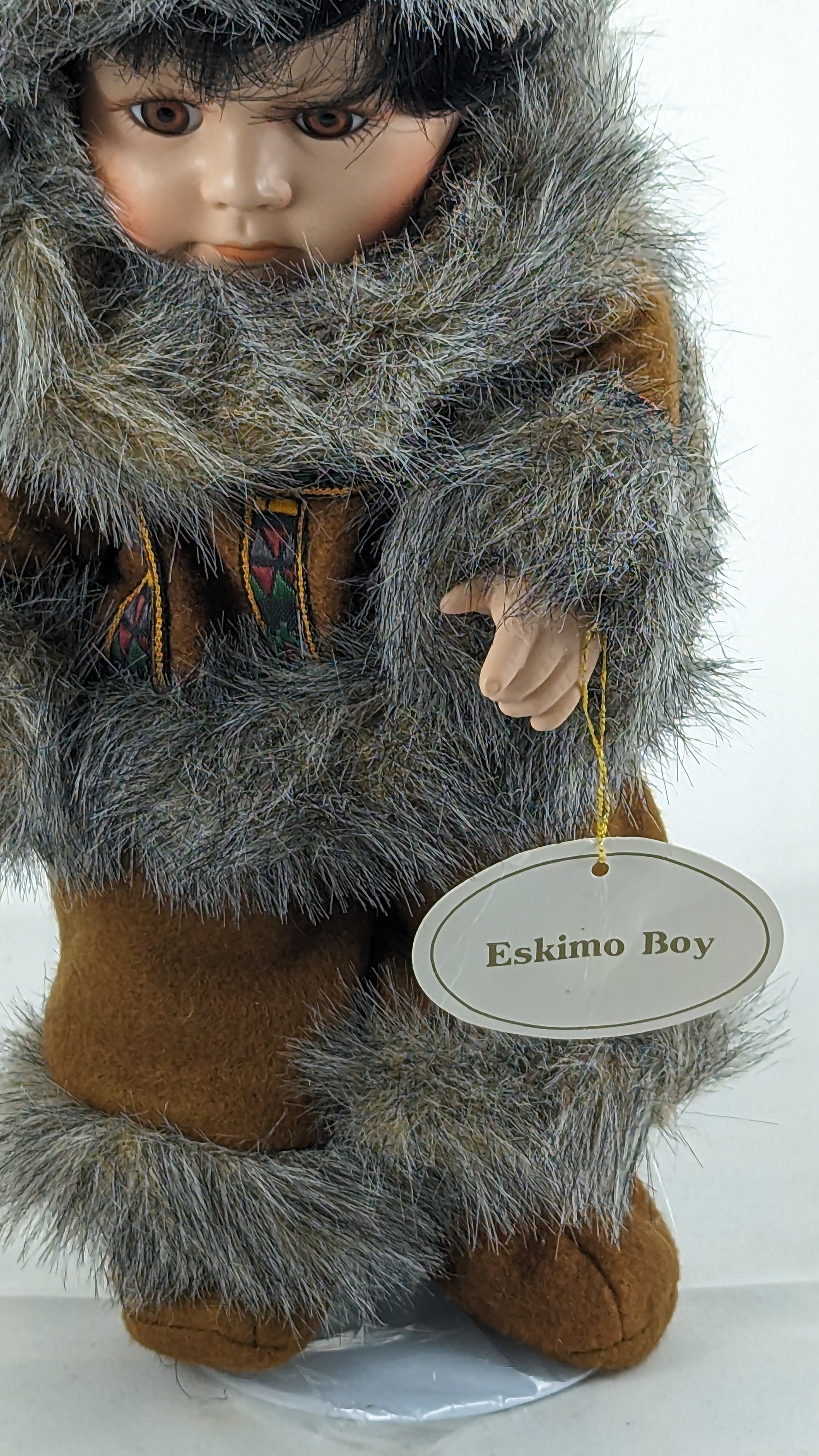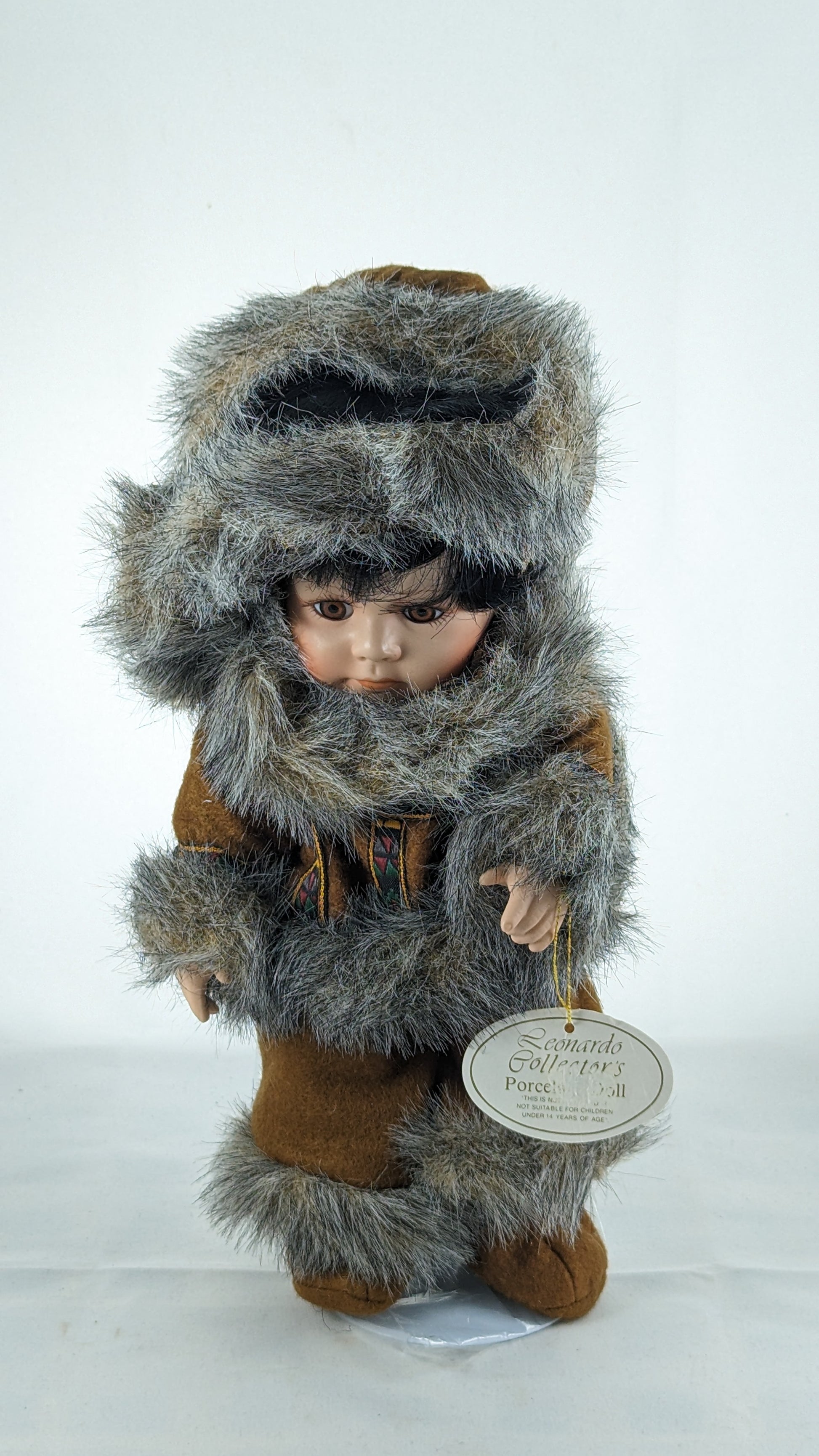 Introducing the enchanting Leonardo Collection "Eskimo Boy" porcelain doll! Step into a world of whimsy and wonder with this captivating collectible that will surely steal your heart.