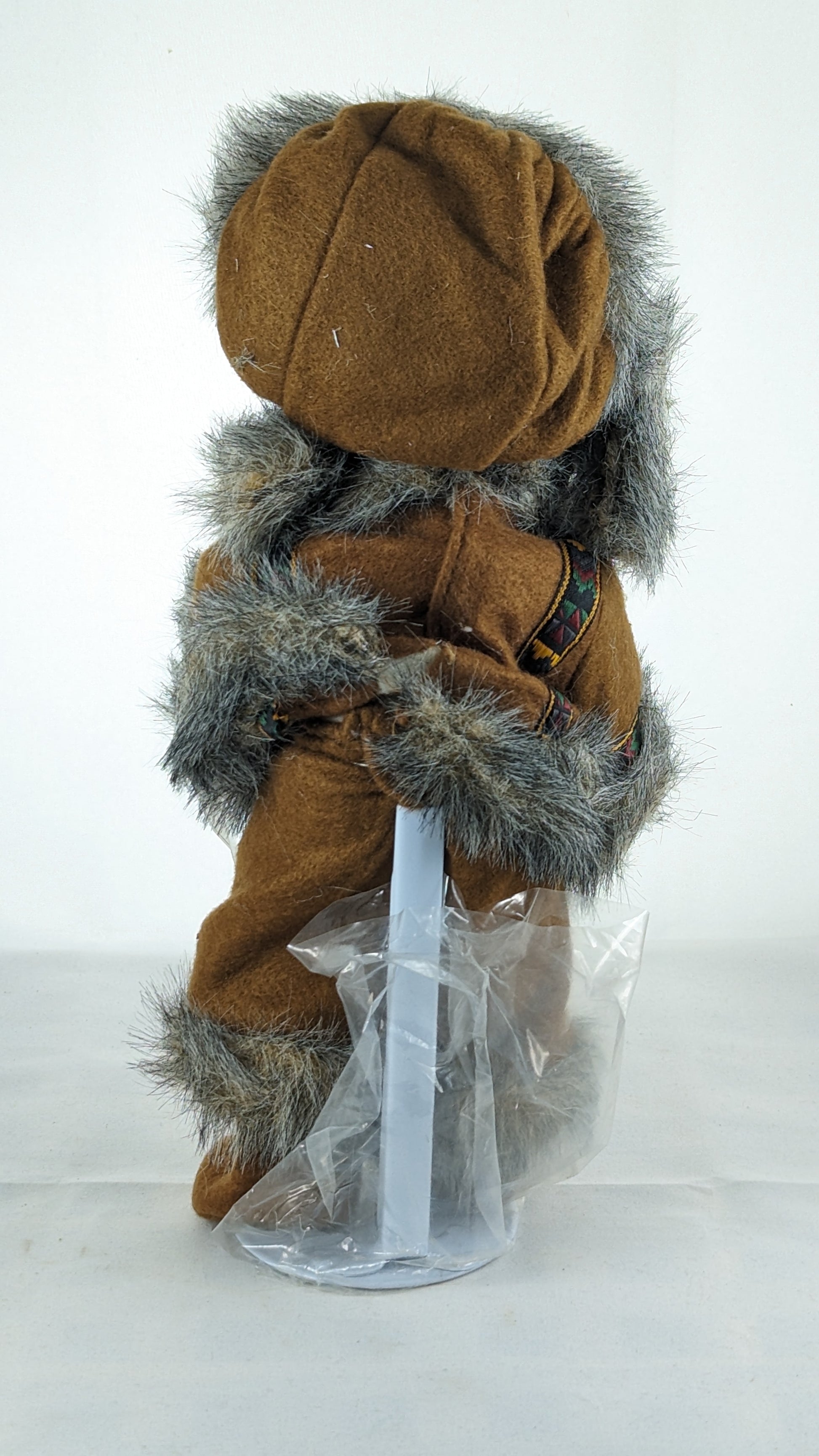 Nestled snugly in its original box, this Eskimo Boy doll is a true treasure. While the box may show signs of love with a touch of wear and tear on the cellophane, the doll itself is in impeccable condition, ready to bring joy to any collector's heart.