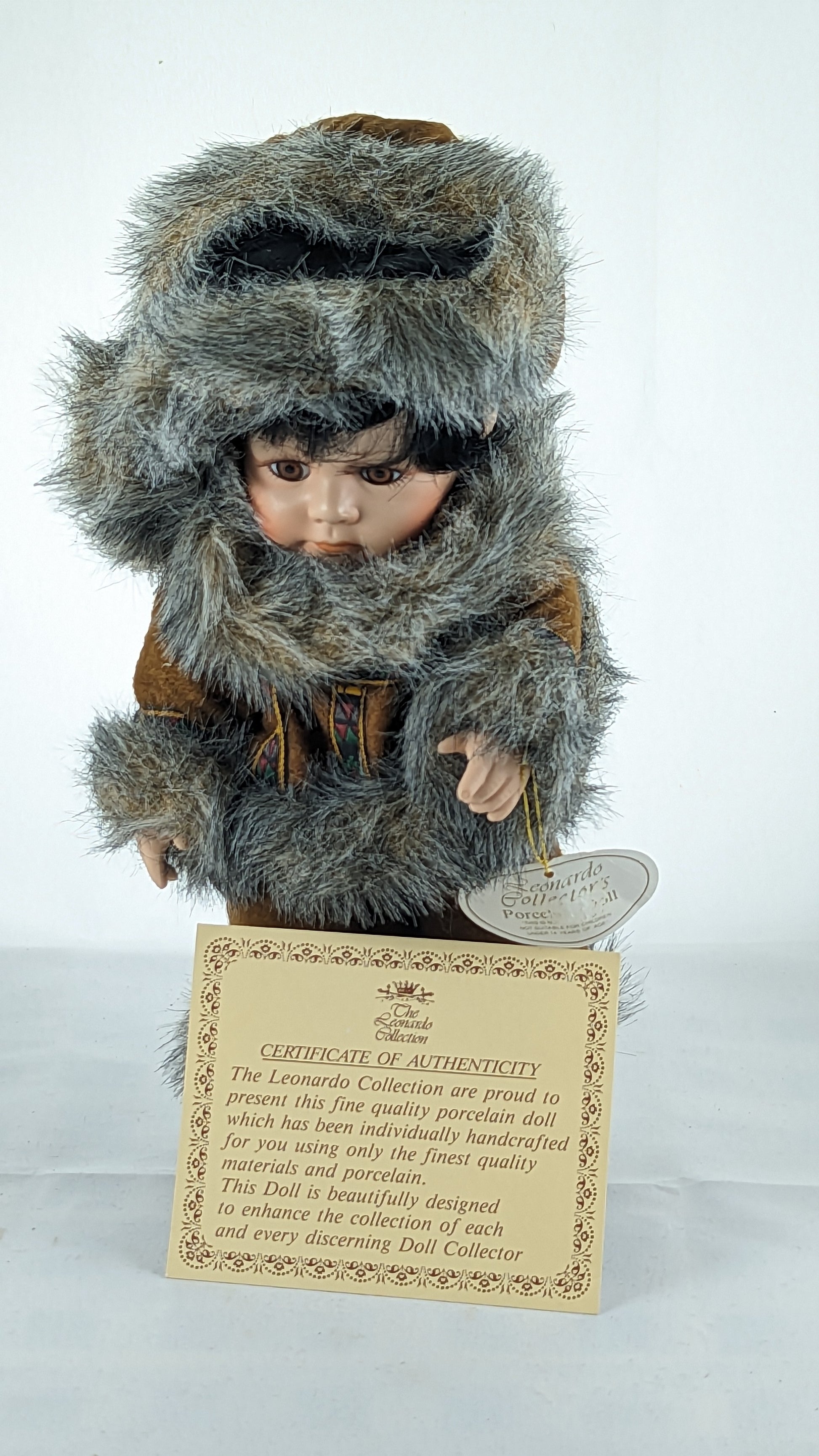 Please note, this collectible is not suitable for children, as it is meant to be cherished and admired by collectors of all ages. So go ahead, indulge in the magic of the Leonardo Collection "Eskimo Boy" porcelain doll and let your imagination soar to new heights. Embrace the whimsical charm and make this little Eskimo Boy a cherished part of your collection today!