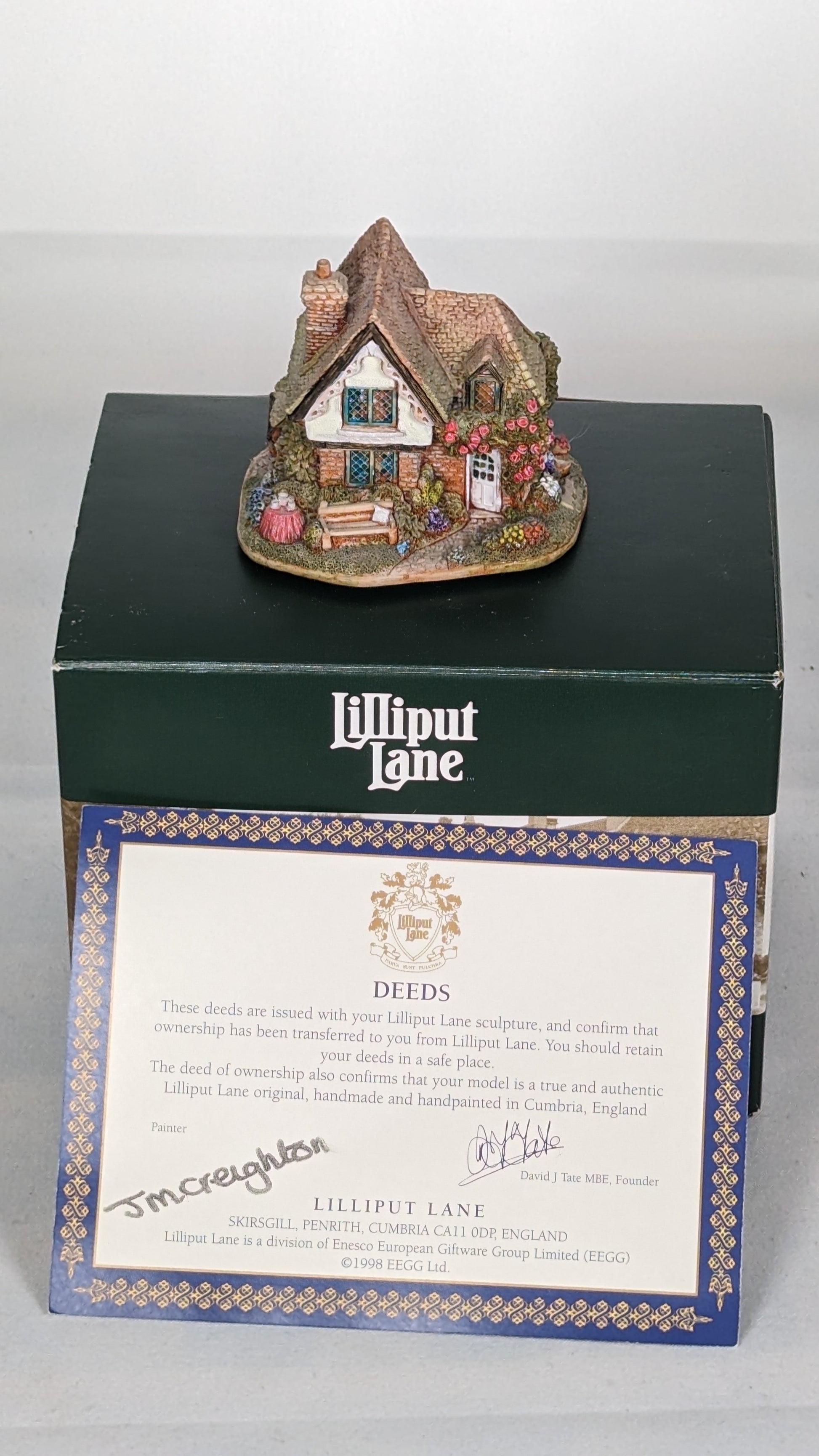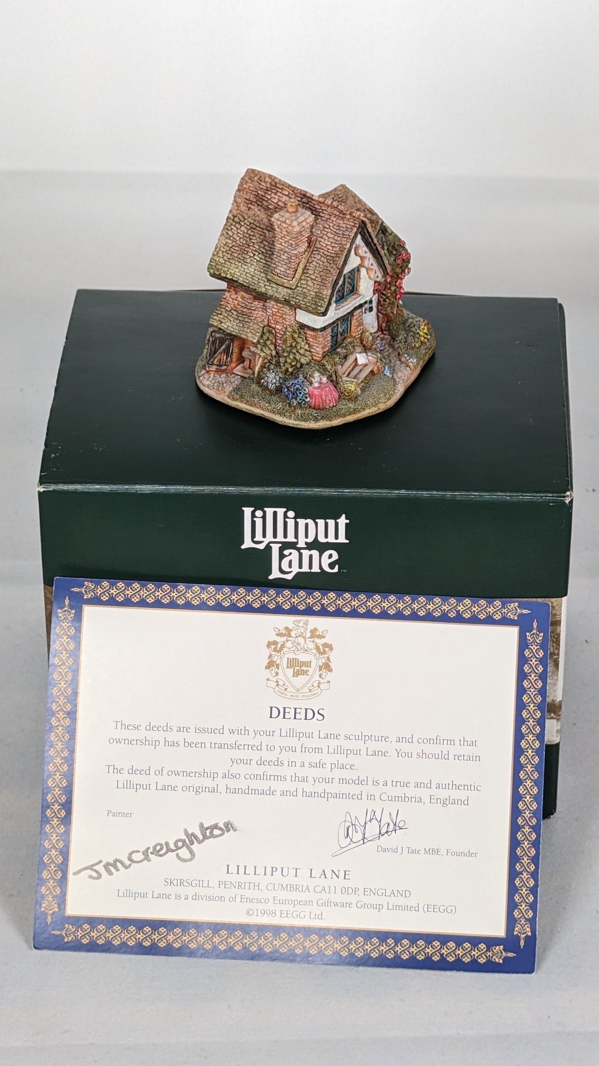This enchanting cottage comes complete with its original box, preserving its pristine condition for you to cherish. And to add an extra touch of authenticity, it even comes with its own title deeds, as if you are the proud owner of this miniature slice of history.