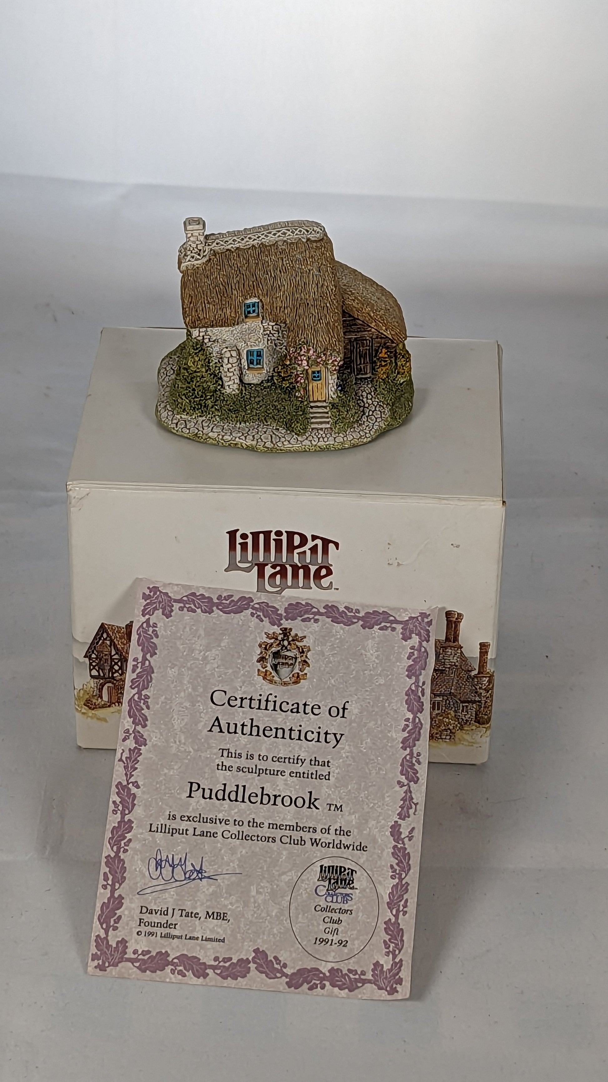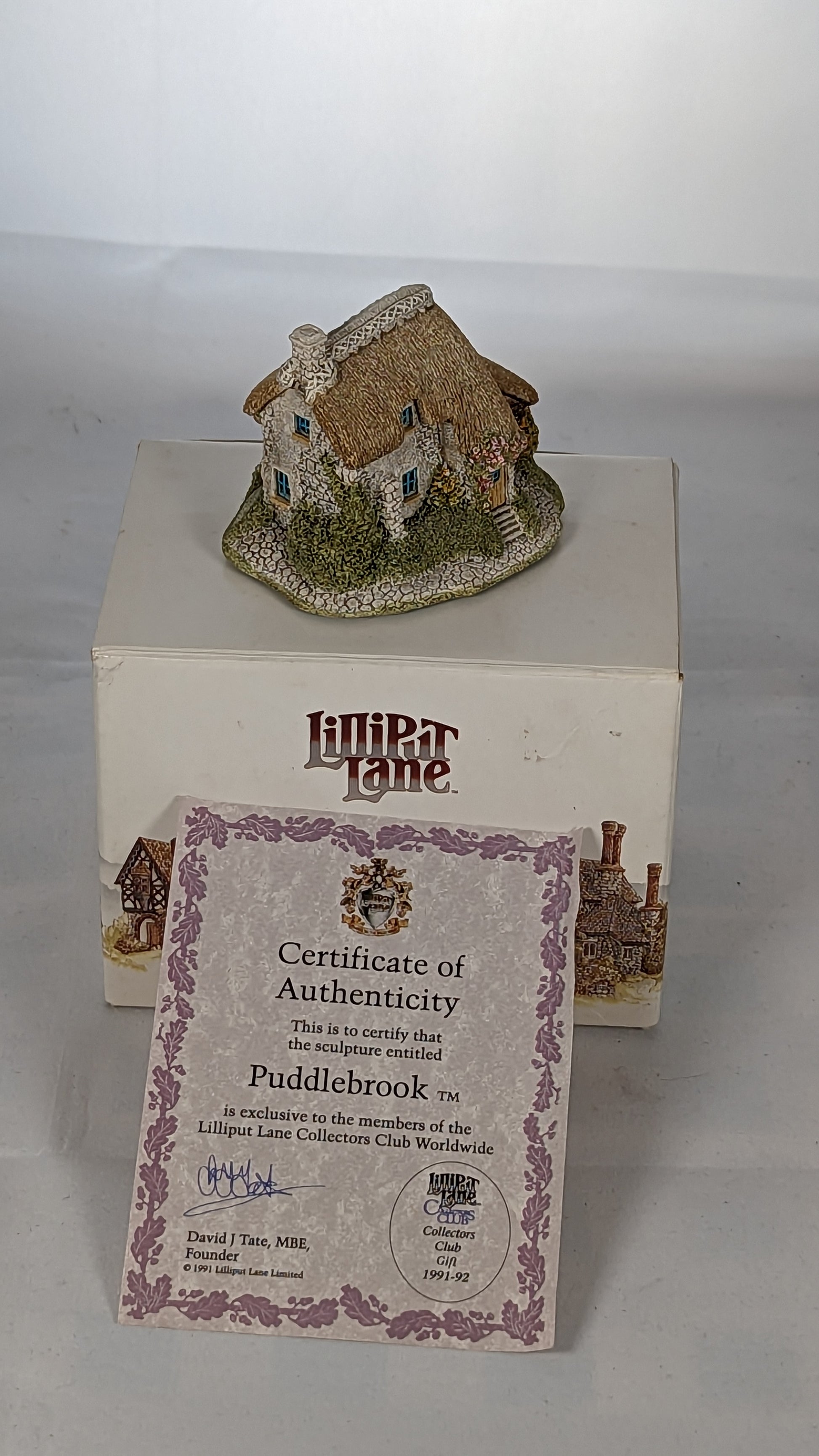 Welcome to the enchanting world of Lilliput Lane, where miniature wonders come to life! Introducing the coveted Lilliput Lane "Puddlebrook" - a true gem from 1991 that will transport you to a whimsical land of charm and nostalgia.
