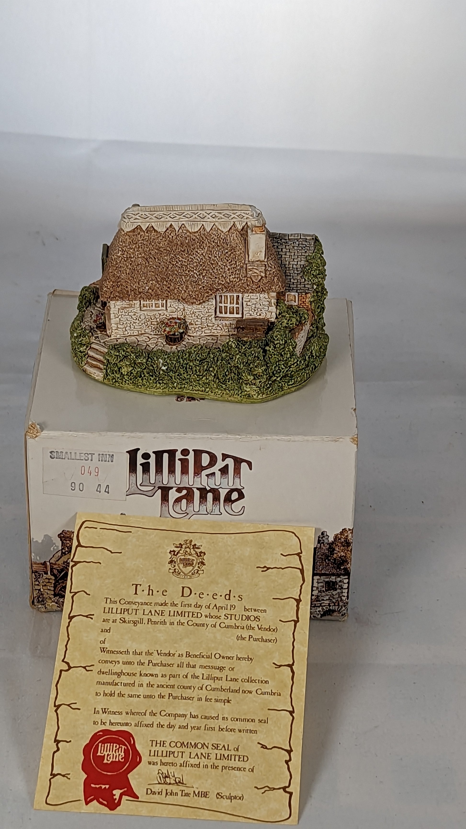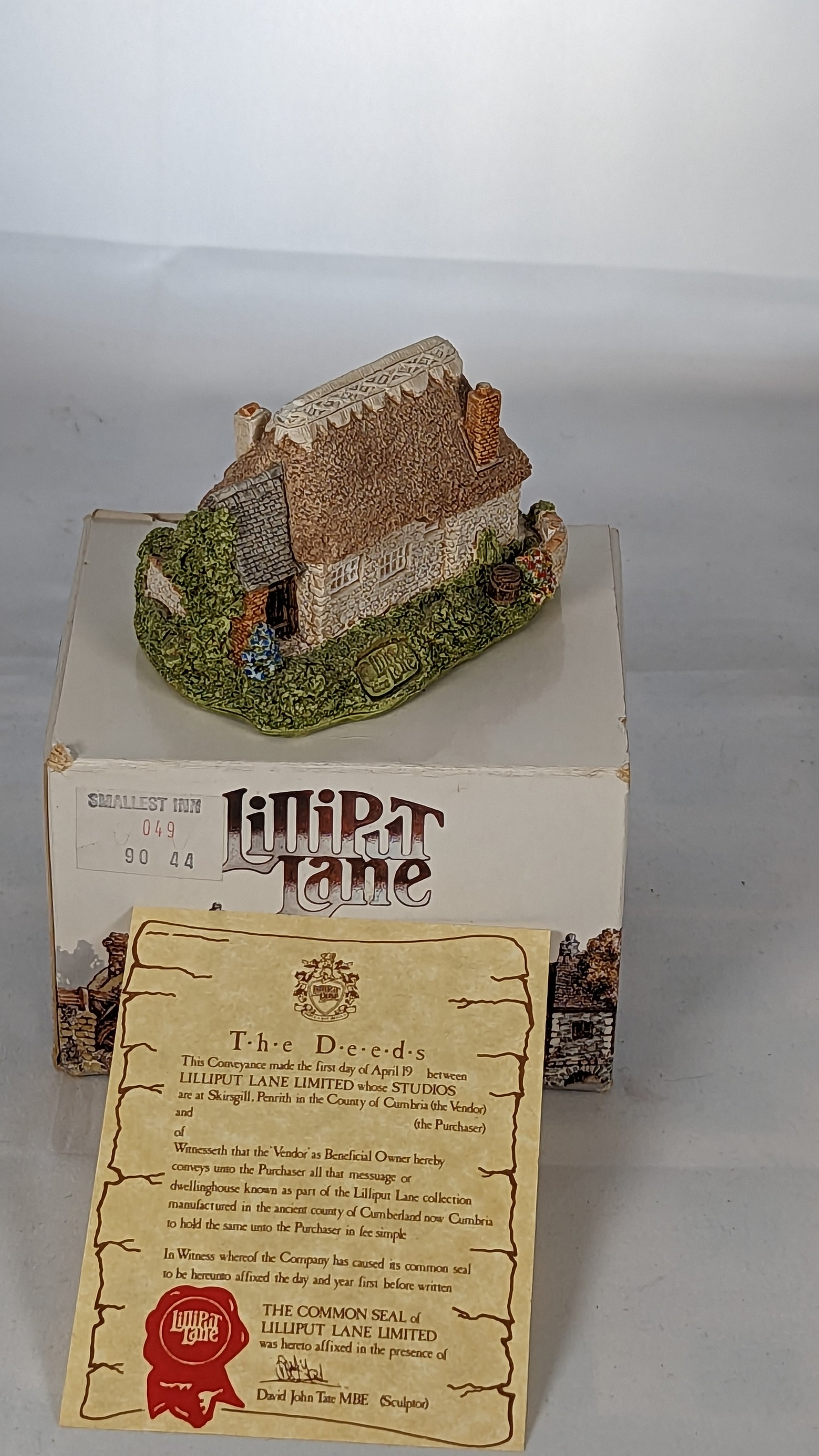 With its impeccable condition, complete with the original box and title deeds, this miniature masterpiece from Lilliput Lane will surely delight collectors and history enthusiasts alike. Whether you're an avid admirer of English folklore or simply appreciate the allure of a unique piece of art, the "Smallest Inn" is a must-have addition to your collection.