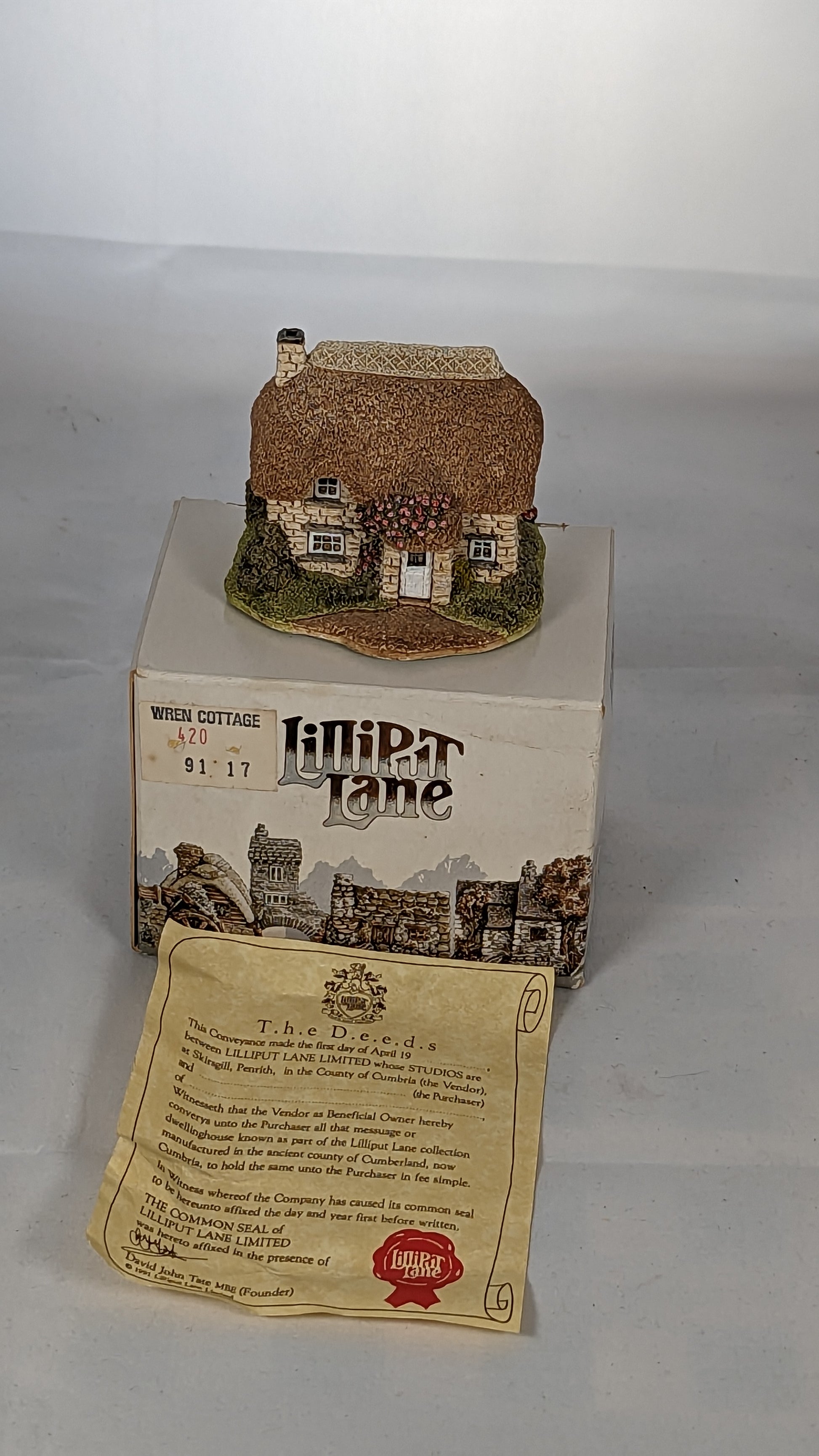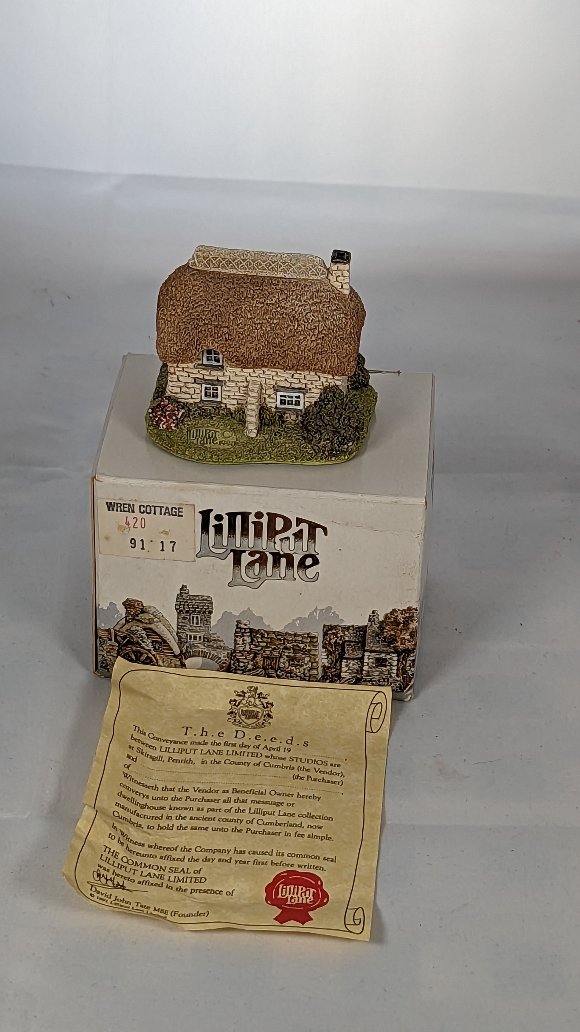 Welcome to the enchanting world of Lilliput Lane, where imagination takes shape in the form of exquisite miniature cottages. Step into the magical realm of "Wren Cottage," a snug little haven that will transport you to a bygone era.