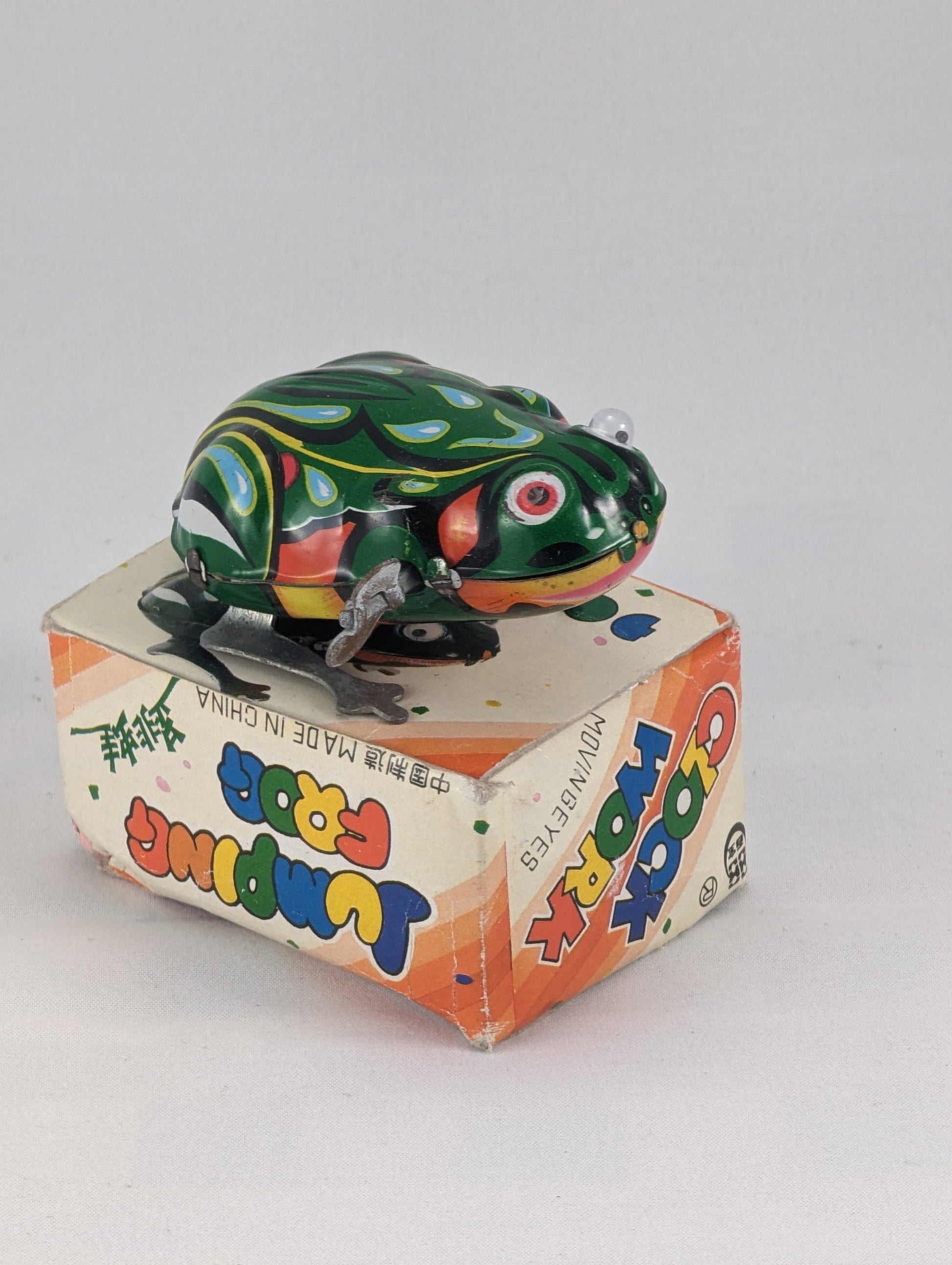 Introducing our delightful duo of vintage tinplate treasures - the Jumping Frog and the Scurrying Mouse! Prepare to be enchanted by the whimsical charm and impeccable craftsmanship of these nostalgic mechanical wonders.