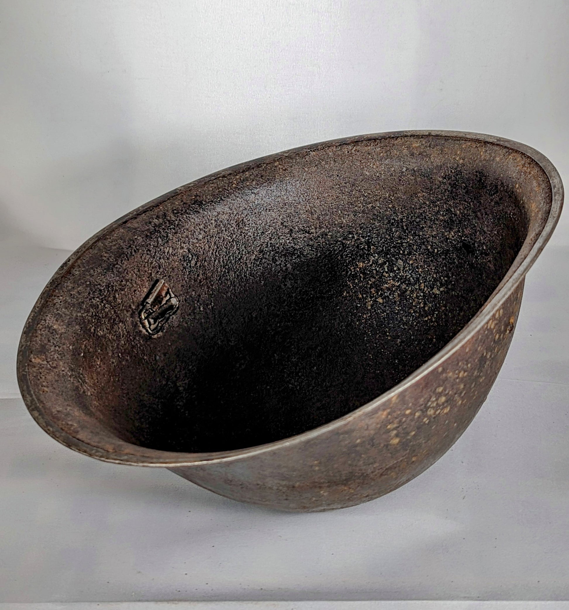 With its solid construction and overall good condition, this helmet shell is ready to be refurbished, allowing you to bring it back to its former glory. Whether you're a history enthusiast, a collector, or simply appreciate the valor of those who fought in the war, this piece is a must-have addition to your collection.