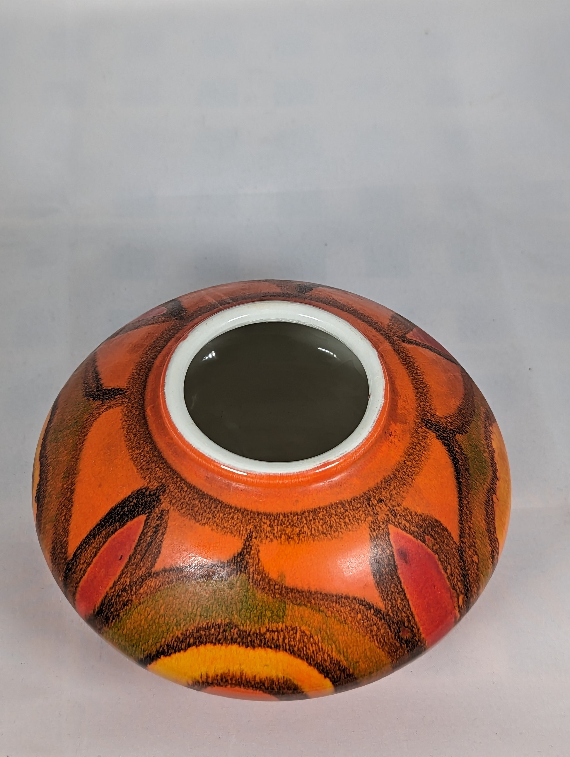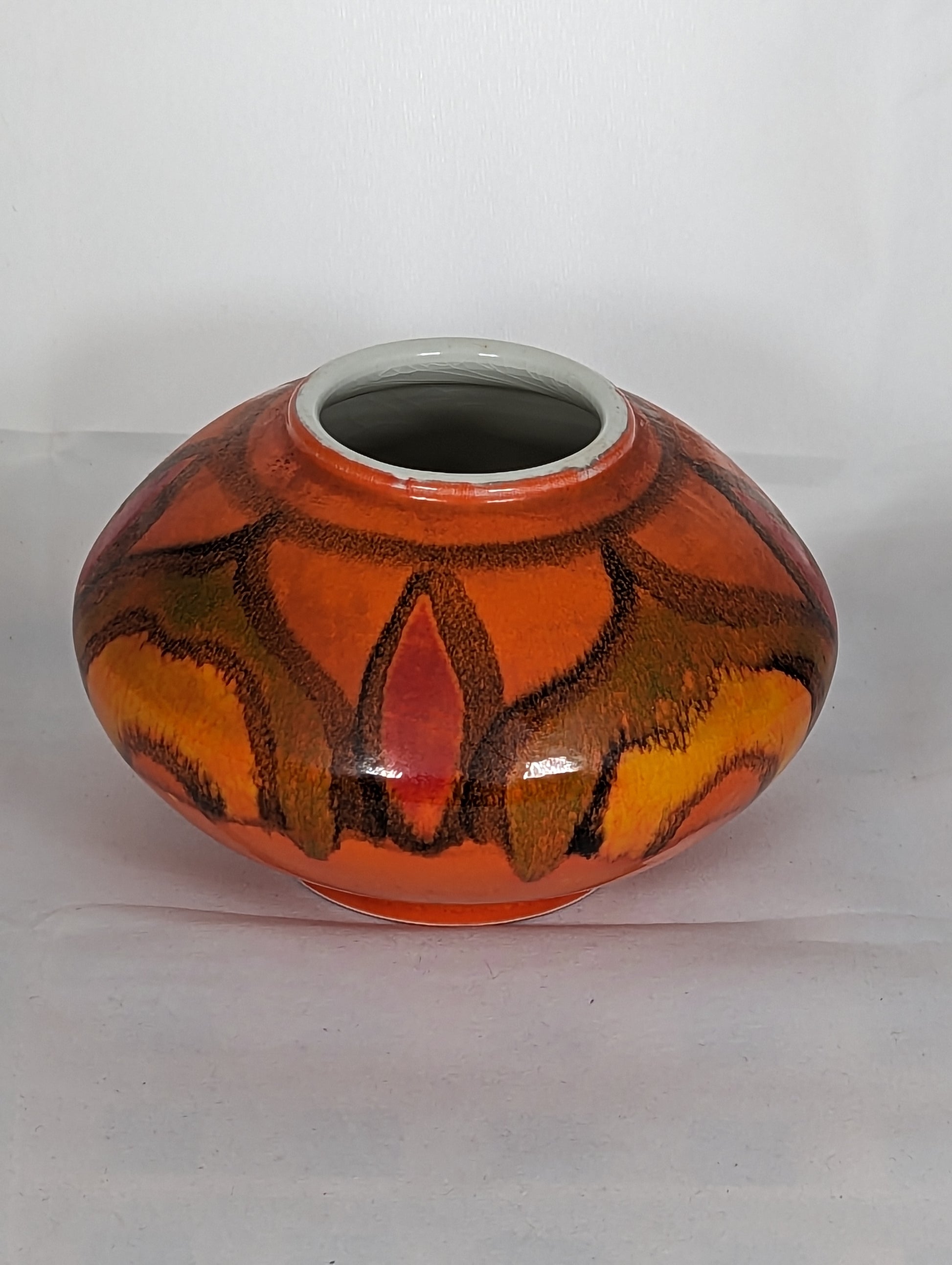 Introducing the Poole Pottery Delphis Onion Vase, a breathtaking masterpiece that exudes romance and captures the essence of artistic beauty. Painted by the talented Carol Cutler, who graced the halls of Poole Pottery from 1969 to 1976, this iconic piece is a true testament to craftsmanship and creativity.