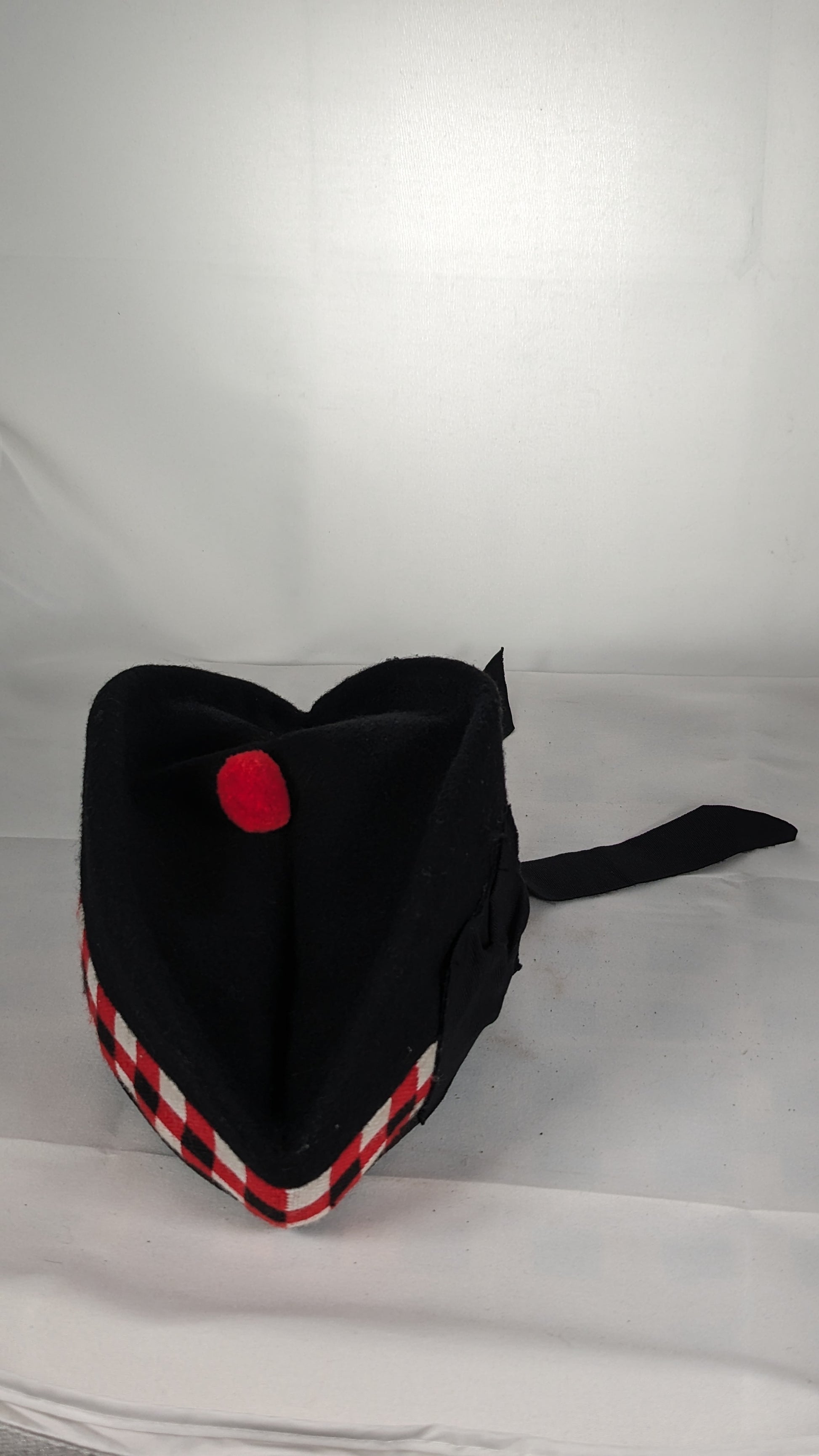 The Glengarry Bonnet features a distinctive red toorie atop its crown, adding a touch of flair and authenticity. On the left side, you'll find a rosette cockade, further accentuating its traditional charm. And let's not forget the ribbons gracefully hanging down behind, completing the classic look.
