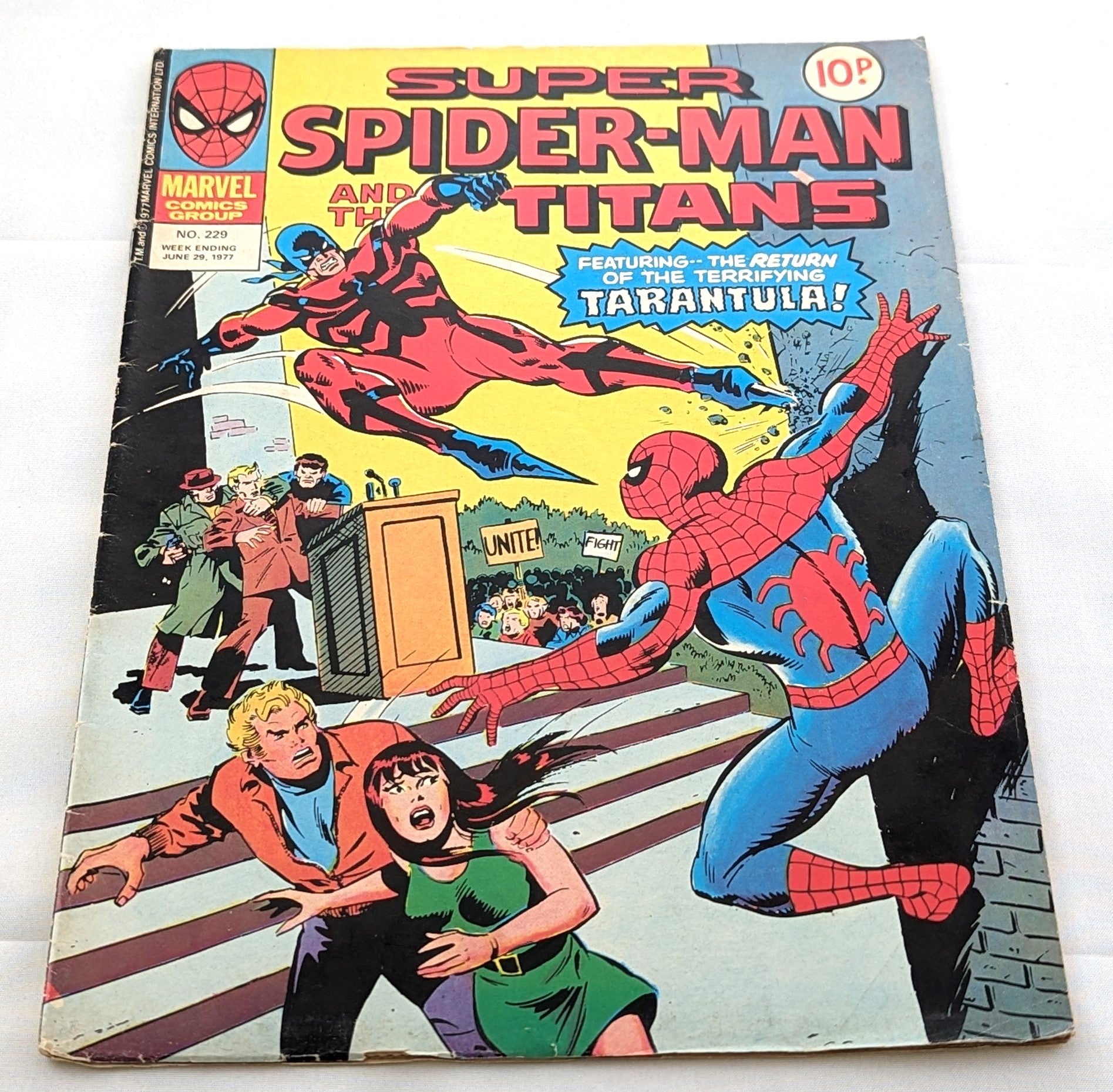 Unleash your inner superhero with the Super Spider Man #229 from 1977! 🕷️✨ Step back in time to the Bronze Age of comics with this vintage gem that's sure to captivate any comic book collector. Despite a name scribbled discreetly on the back page, this issue is in good condition, with only minor wear marks along the spine - no tears in sight! 🦸‍♂️💥