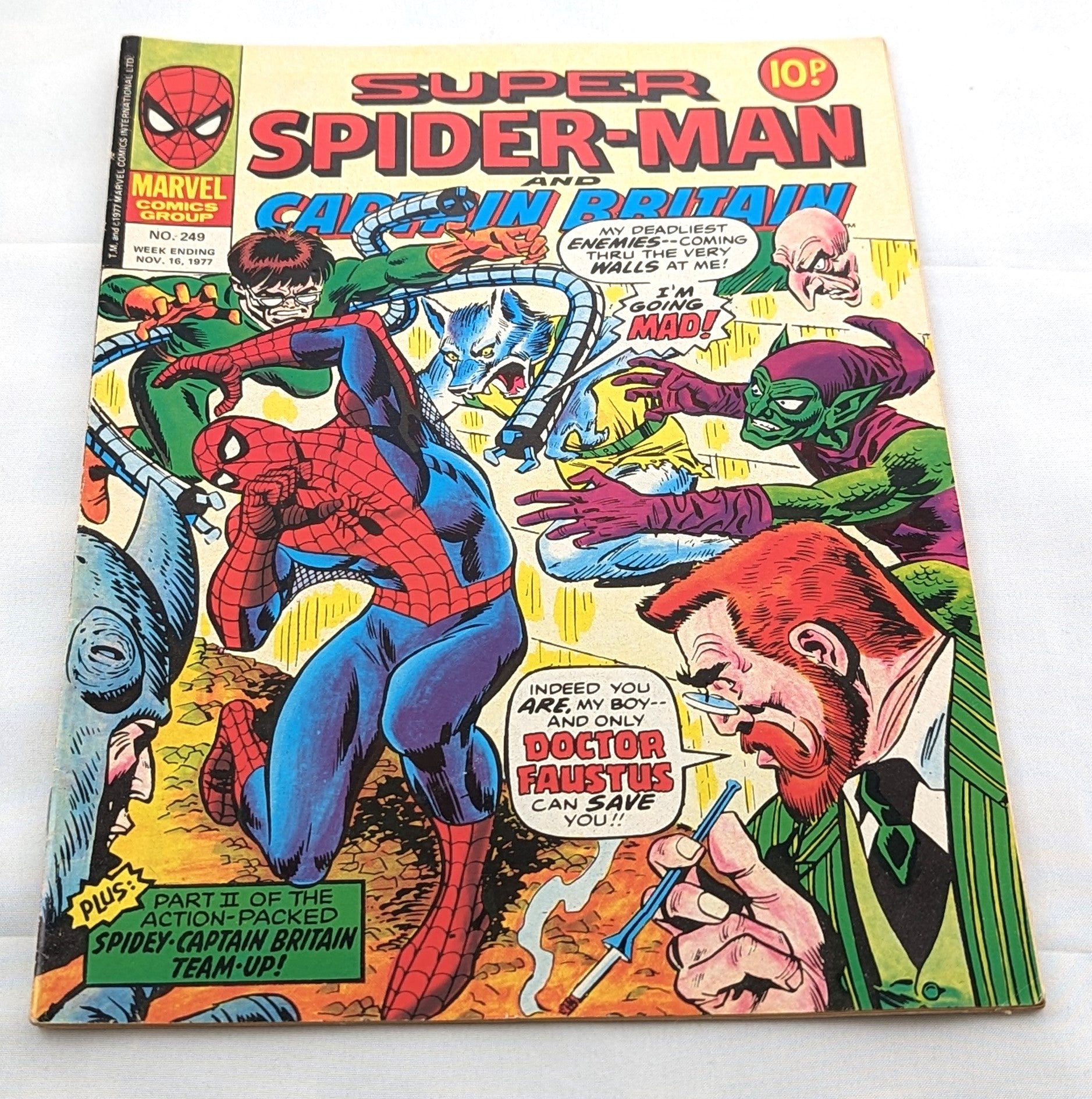 Step into the world of Super Spider Man #249 from 1977 and let your inner child run wild! 🕷️ This delightful Bronze Age comic issue is like a time capsule back to Nov 16, 1977, when heroes and villains clashed in epic battles on every page. Despite a small name written discreetly at the top right of the back page, this comic is a rare gem for any collector. Transport yourself back to a simpler time, where the stories inside these pages inspired a whole universe of blockbuster movies! Add this UK edition by Marvel Comics Group to your collection and relive the magic of the never-ending battle between good and evil. Get ready for a nostalgia trip like no other with Super Spider Man #249!