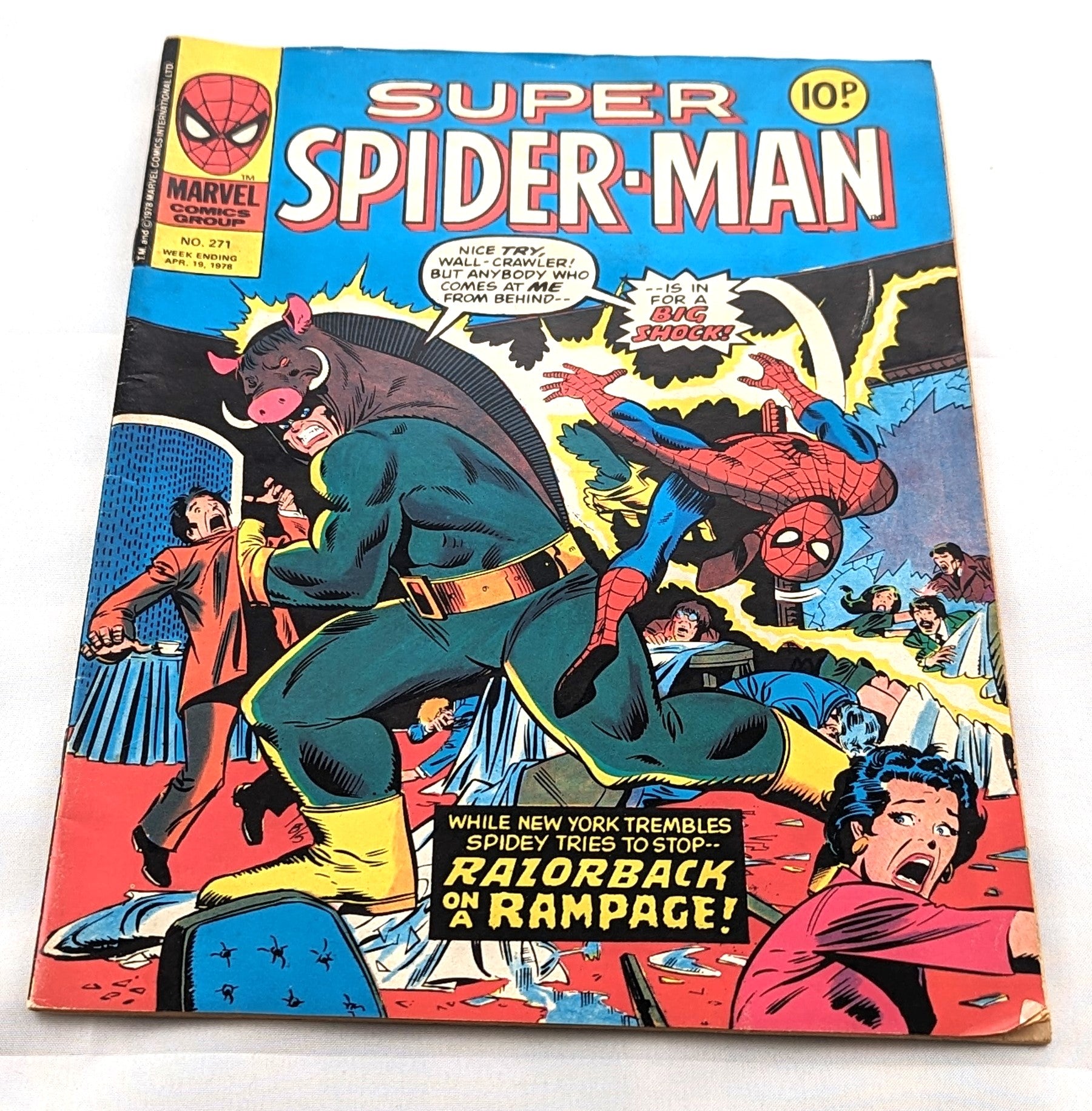 This comic is in good condition, free from any marks or tears, making it a prized addition to your collection. Whether you're a dedicated comic collector or simply looking to reignite your inner child, Super Spider Man #271 is the perfect choice. Let the nostalgia of this classic comic transport you to a simpler time filled with wonder and imagination. Don't miss out on the chance to own a piece of comic book history!