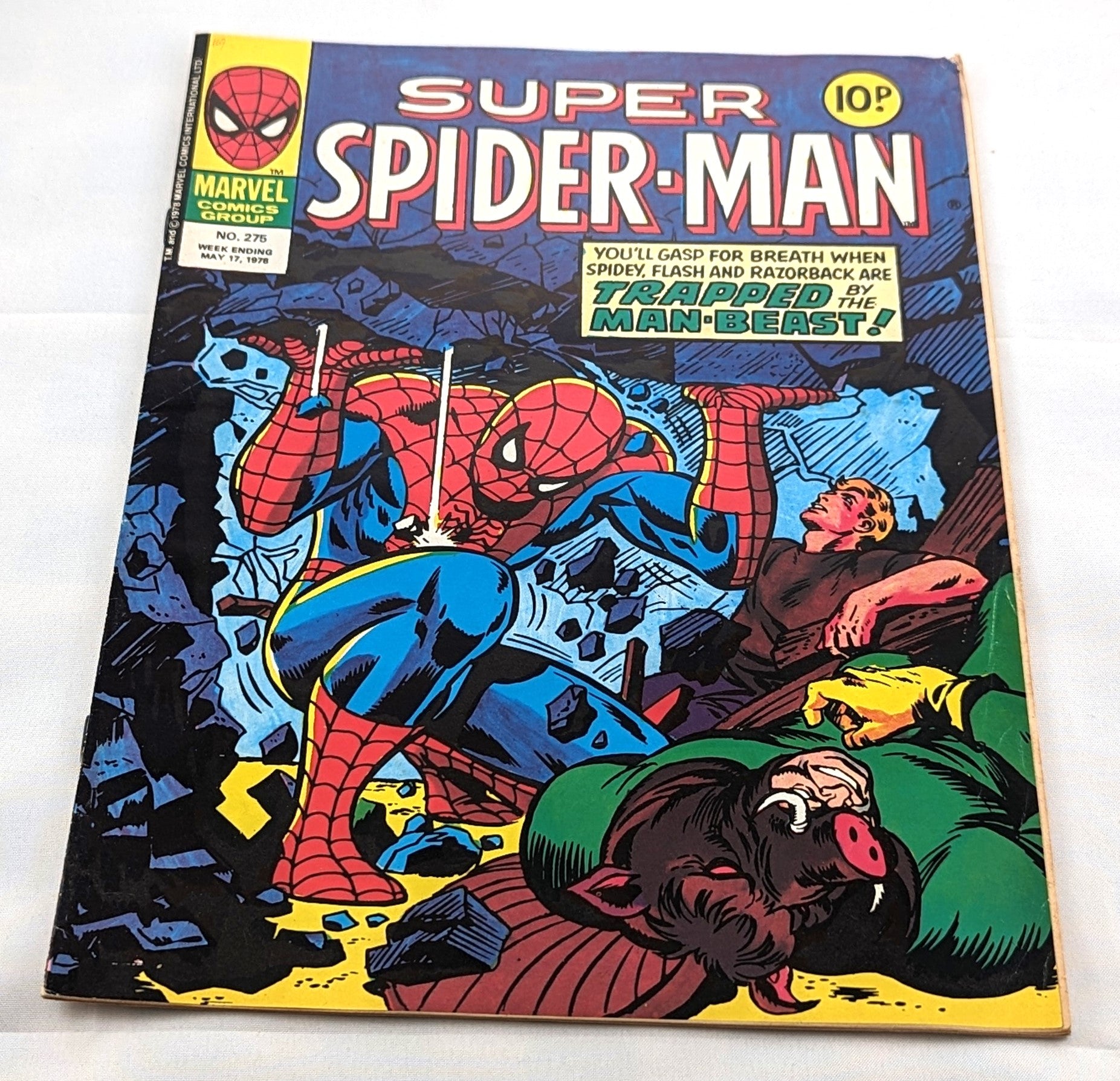 Step back in time to May 17, 1978, with Super Spider Man #275 by Marvel Comics Group. This Bronze Age classic is a true gem for any comic collector or superhero fan. Imagine diving into a world where good battles evil, where wonder and imagination collide in a simpler time. This issue is not just a piece of history, it's a portal to another era where you can lose yourself in the adventures of Spider Man. With no signs of marks or tears, this comic is in good condition, ready to add a touch of nostalgia to your collection or help you recapture that inner child joy. Don't miss out on the chance to own a piece of comic book history with Super Spider Man #275!