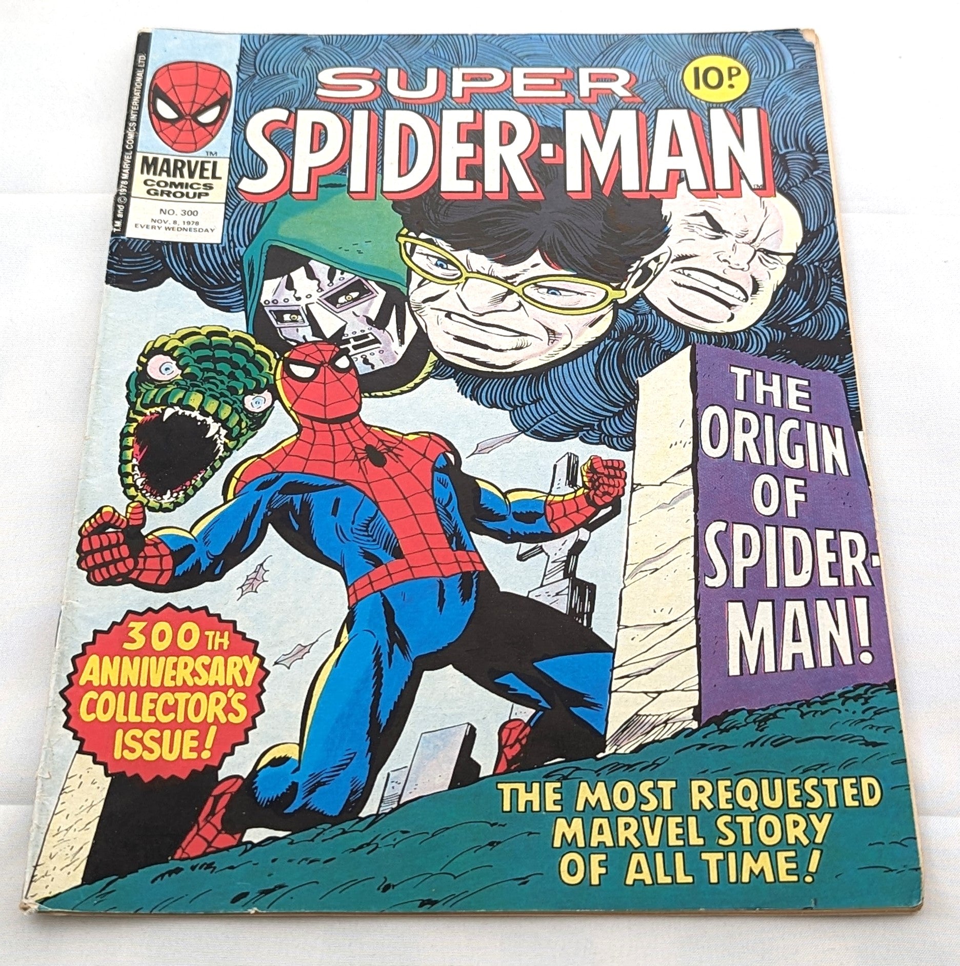 Step into a time machine and journey back to 1978 with the Super Spider Man #300 comic! 🕷️ Immerse yourself in the Bronze Age with this vintage gem that's like a portal to the past, complete with the nostalgic thrill of battling good versus evil. Picture this: a classic comic book in good condition, infused with the magic of storytelling that has inspired an entire universe of movies. Marvel Comics Group presents this UK-market treasure, shining bright with the same adventures as the US version - it's like holding a piece of history in your hands! Let your inner child run wild as you flip through the pages, and feel the excitement that only a vintage comic can deliver. The only imperfection? A name discreetly written at the top right of the back page. Add this Super Spider Man #300 to your collection and relive the epic battles and captivating storylines that have stood the test of time. 🦸‍♂️🎥
