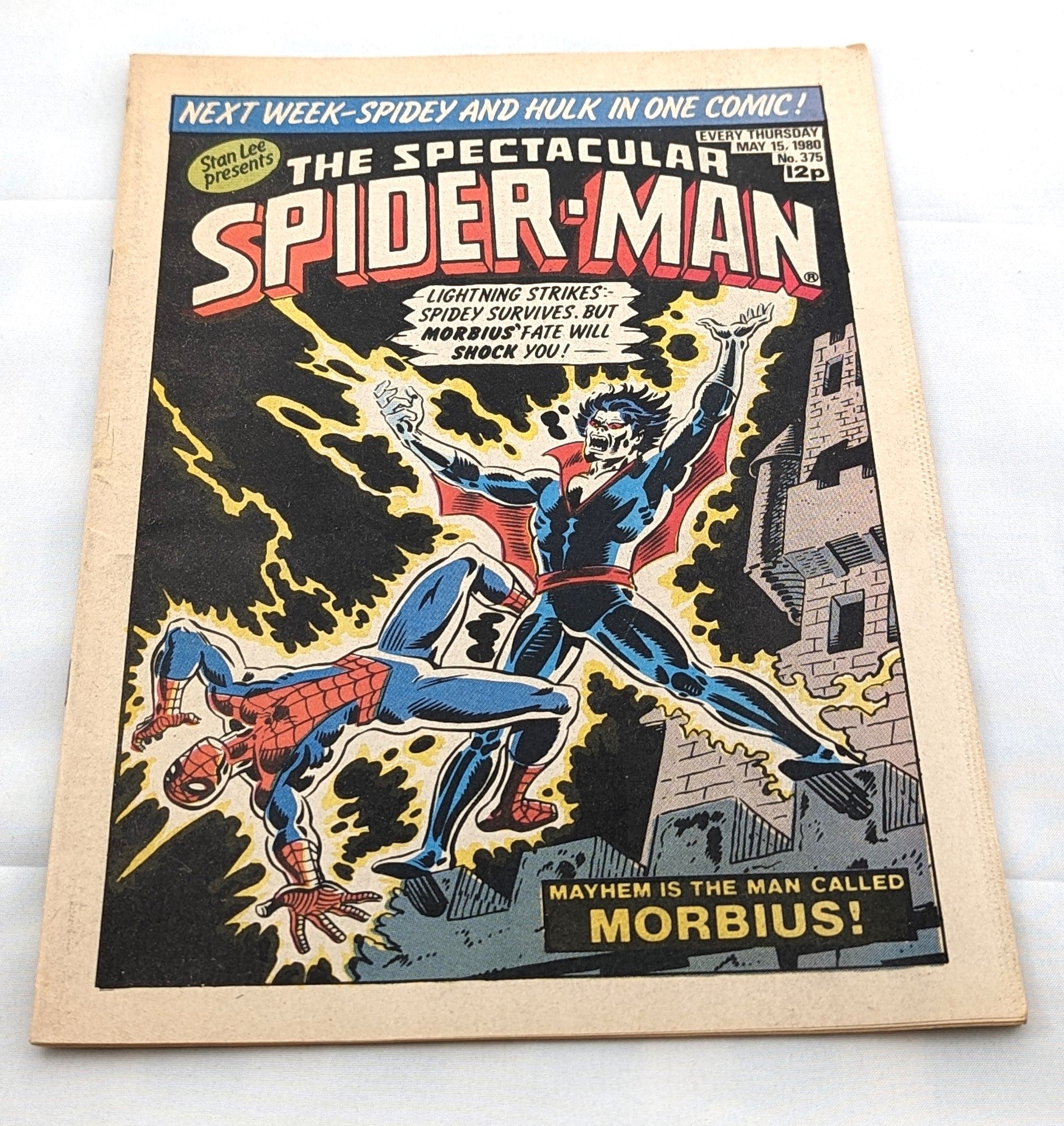 Step into a world of heroes and villains with The Spectacular Spider Man Weekly #375 from 1980, lovingly presented to you by the one and only Stan Lee! 🕷️🦸 Watch in awe as the vibrant illustrations leap off the pages, bringing to life some of the greatest storylines of the Bronze Age of comics.
