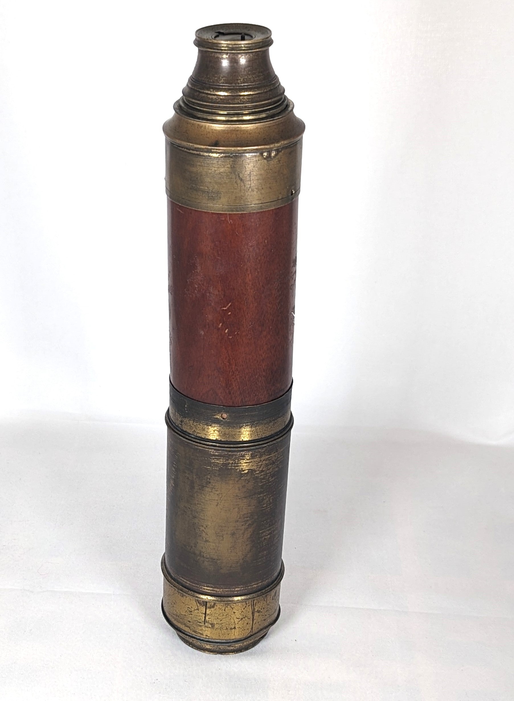 Whether you're a collector seeking a striking display piece or an enthusiast yearning to relive the glory days of exploration, this Victorian Mahogany and Brass Three Draw Telescope is sure to captivate your imagination. Unleash your inner adventurer and bring a touch of history into your world. Embrace the wonder and embark on a voyage of discovery today!