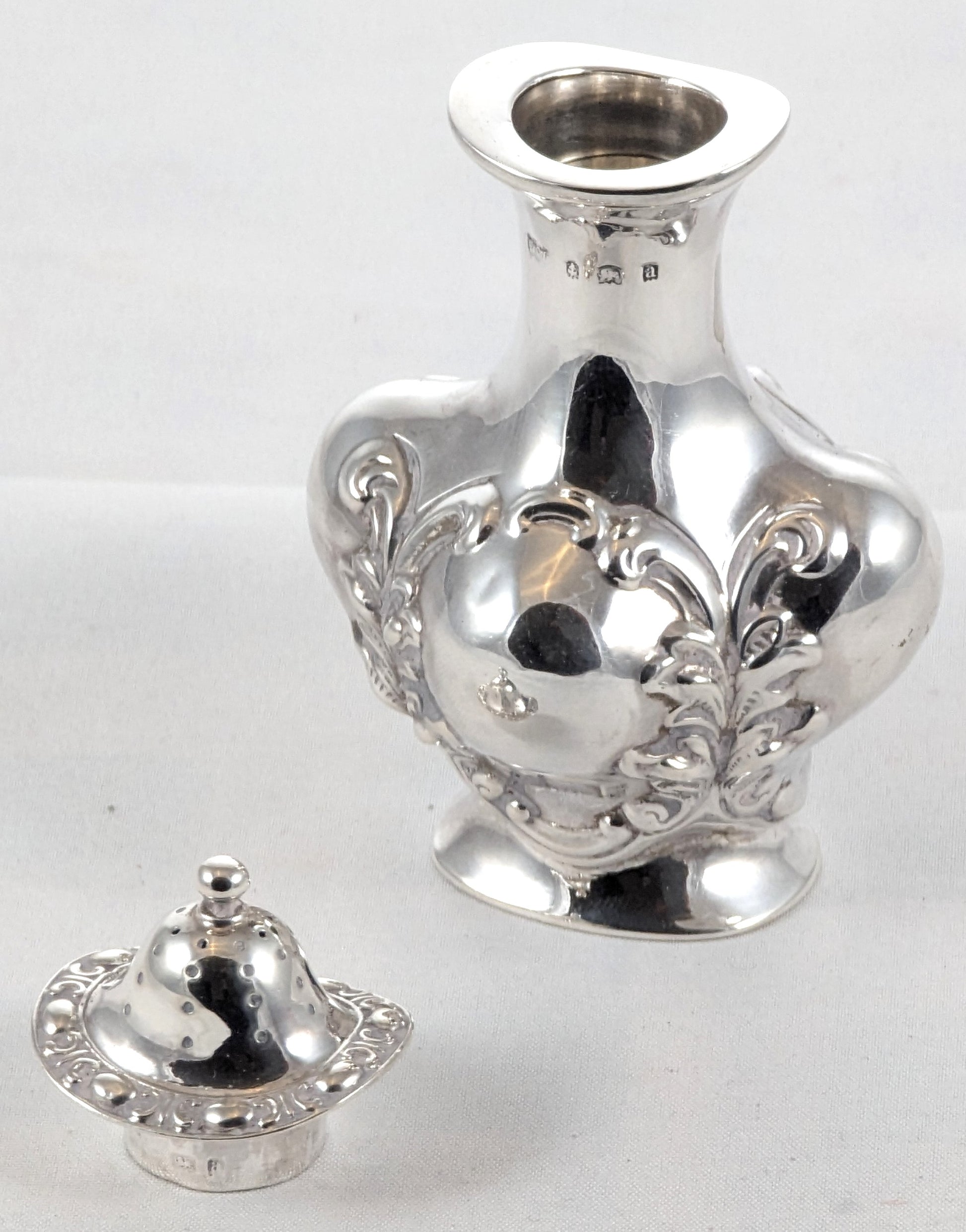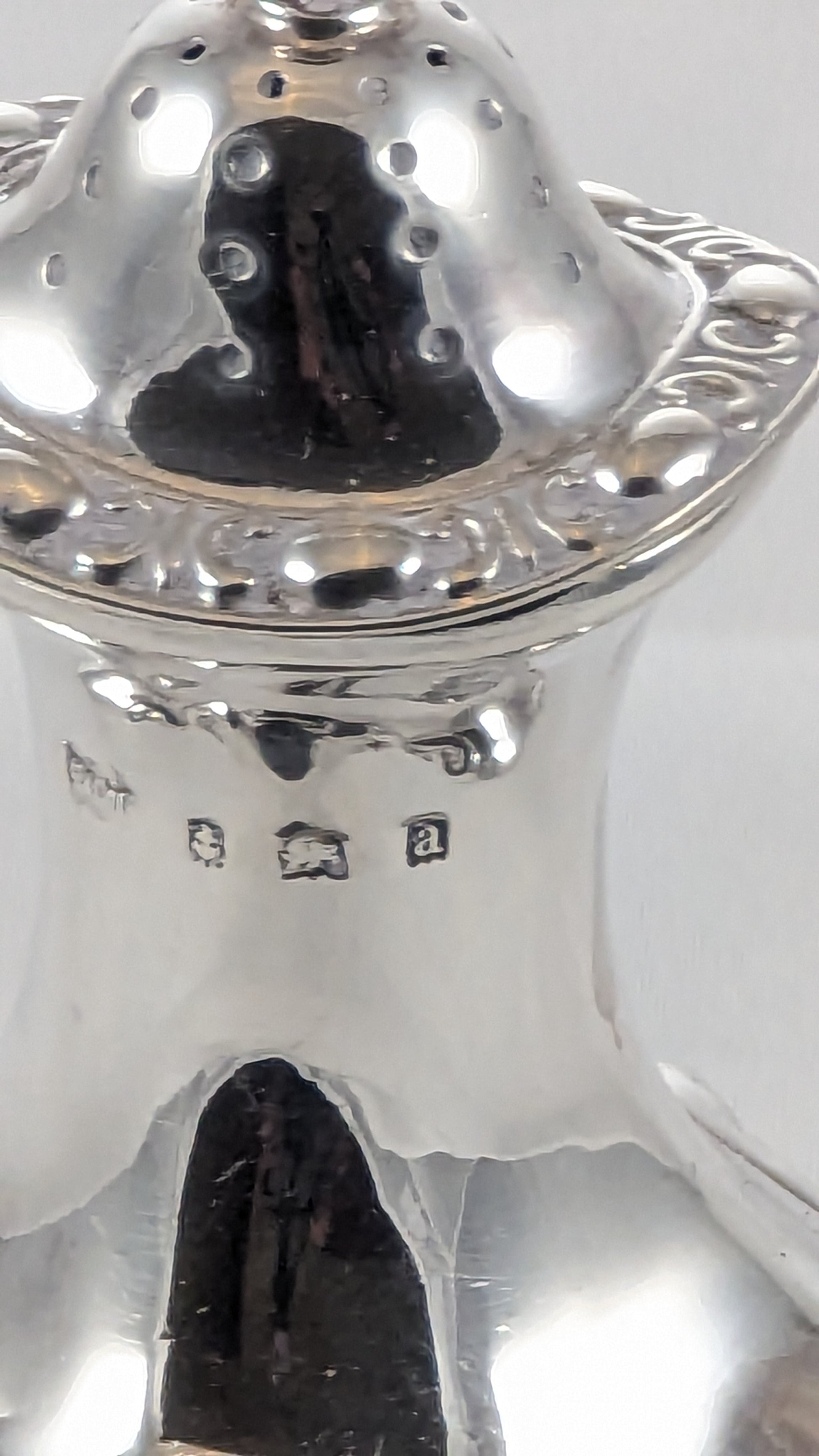 This pepper shaker bears the prestigious Birmingham assay mark, a testament to its authenticity and quality. Dating back to the year 1900, it carries with it a rich history that adds to its allure. Standing at a charming 9cm tall and measuring 6cm at its widest point, this little gem is both dainty and delightful.