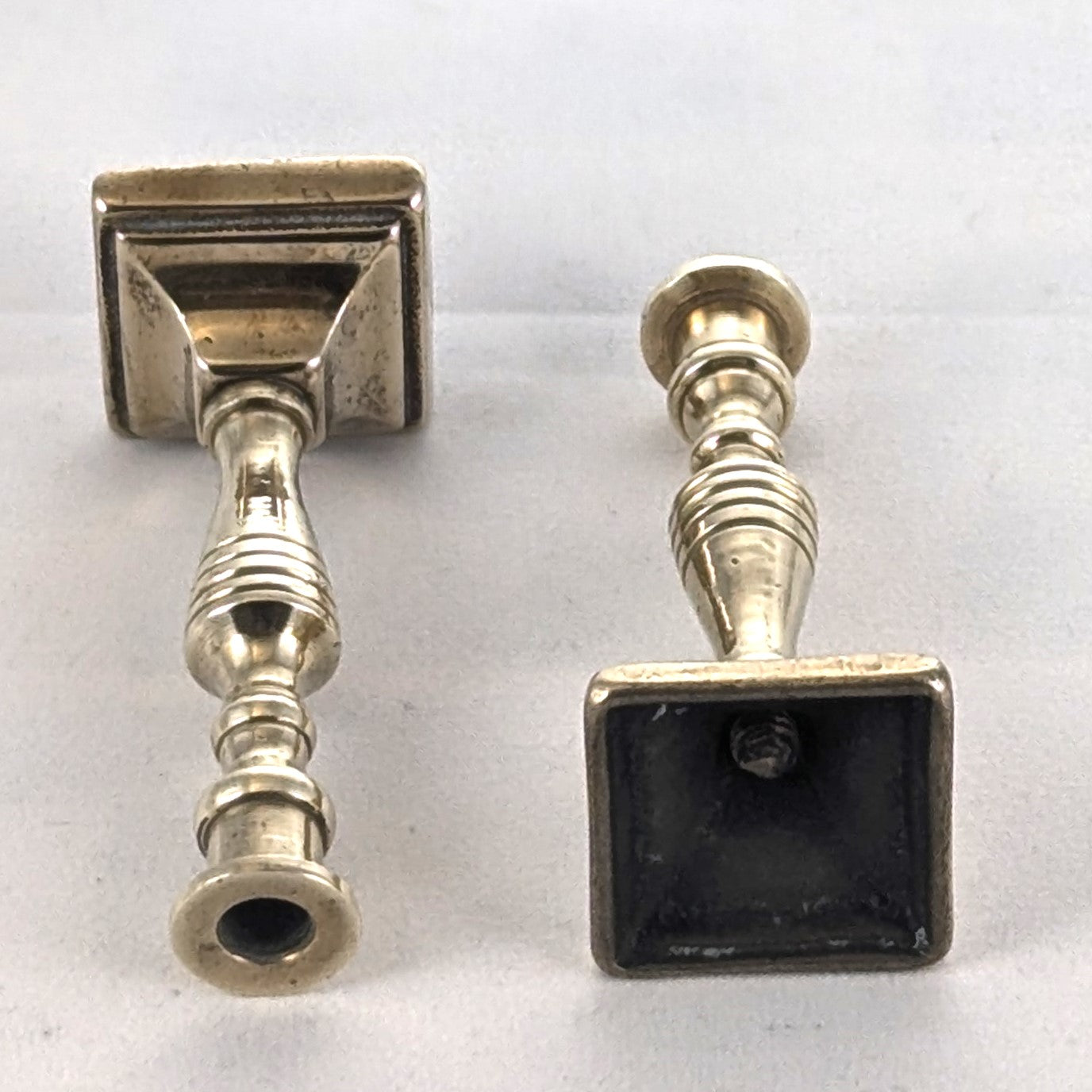 Introducing the Vintage Brass Miniature Candlesticks, where elegance meets charm in the most delightful way! Standing at a petite 8cm tall with a dainty base width of 3cm, these little gems are true treasures that beckon to be admired.