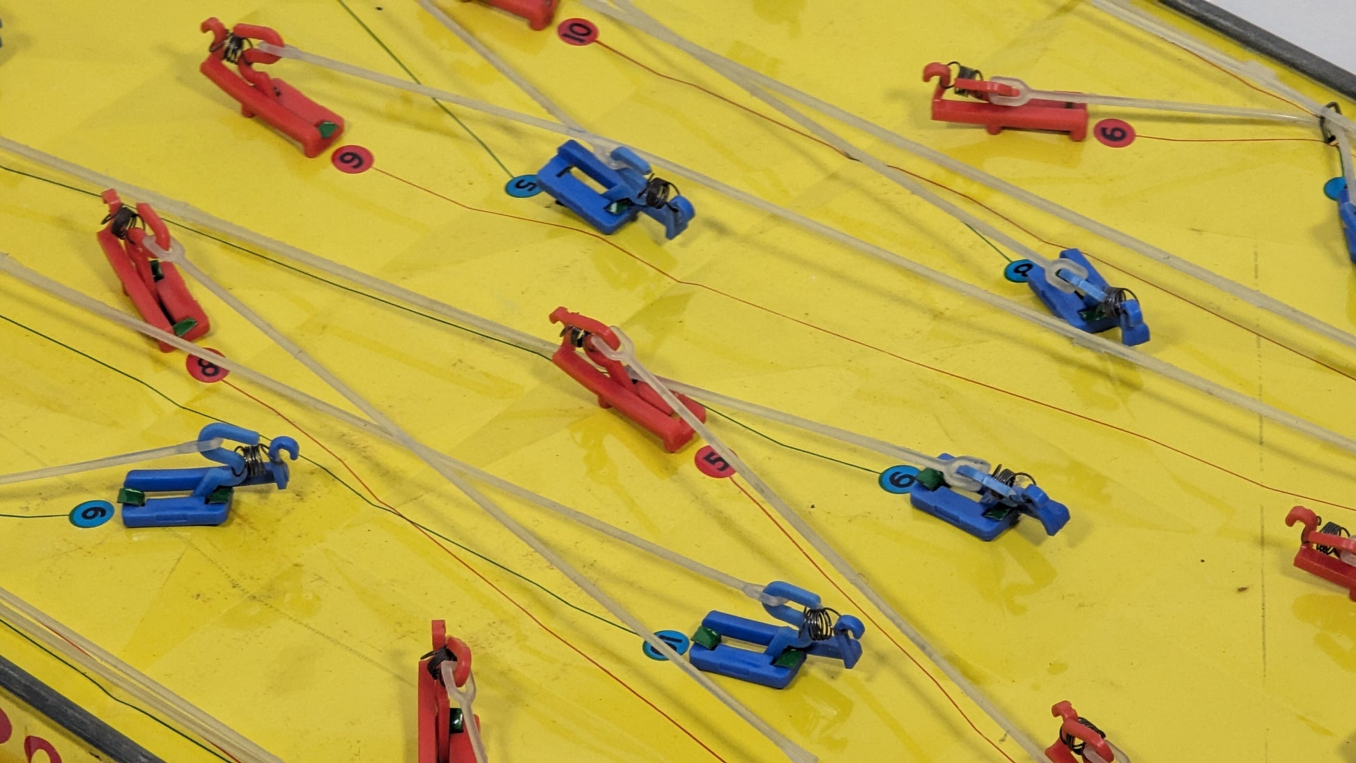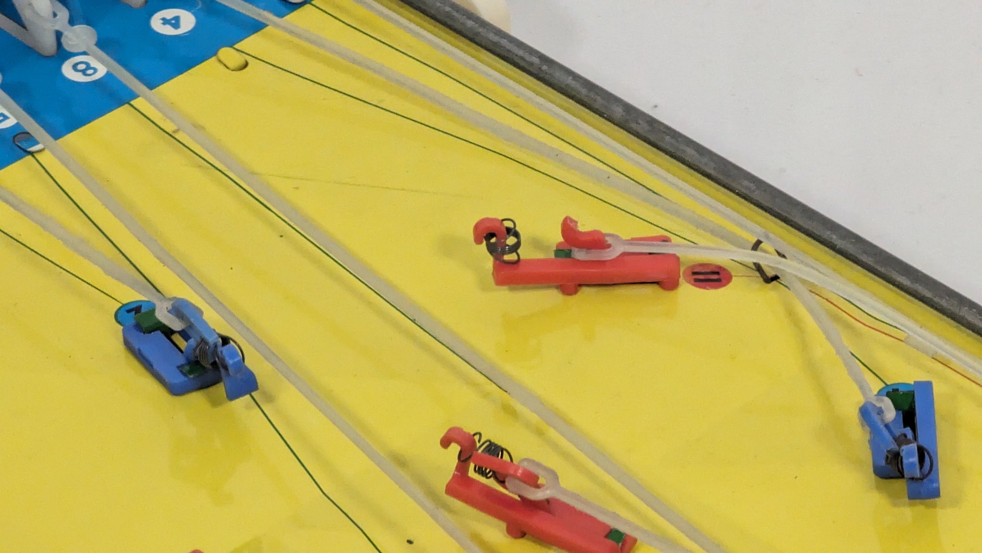 Take control of the action with the clever lever mechanism at either end of the pitch. With elastic and springs cleverly hidden beneath, you can effortlessly guide your players towards victory. And don't forget the swivel that allows you to maneuver the goal keeper with precision! 🎮⚡️