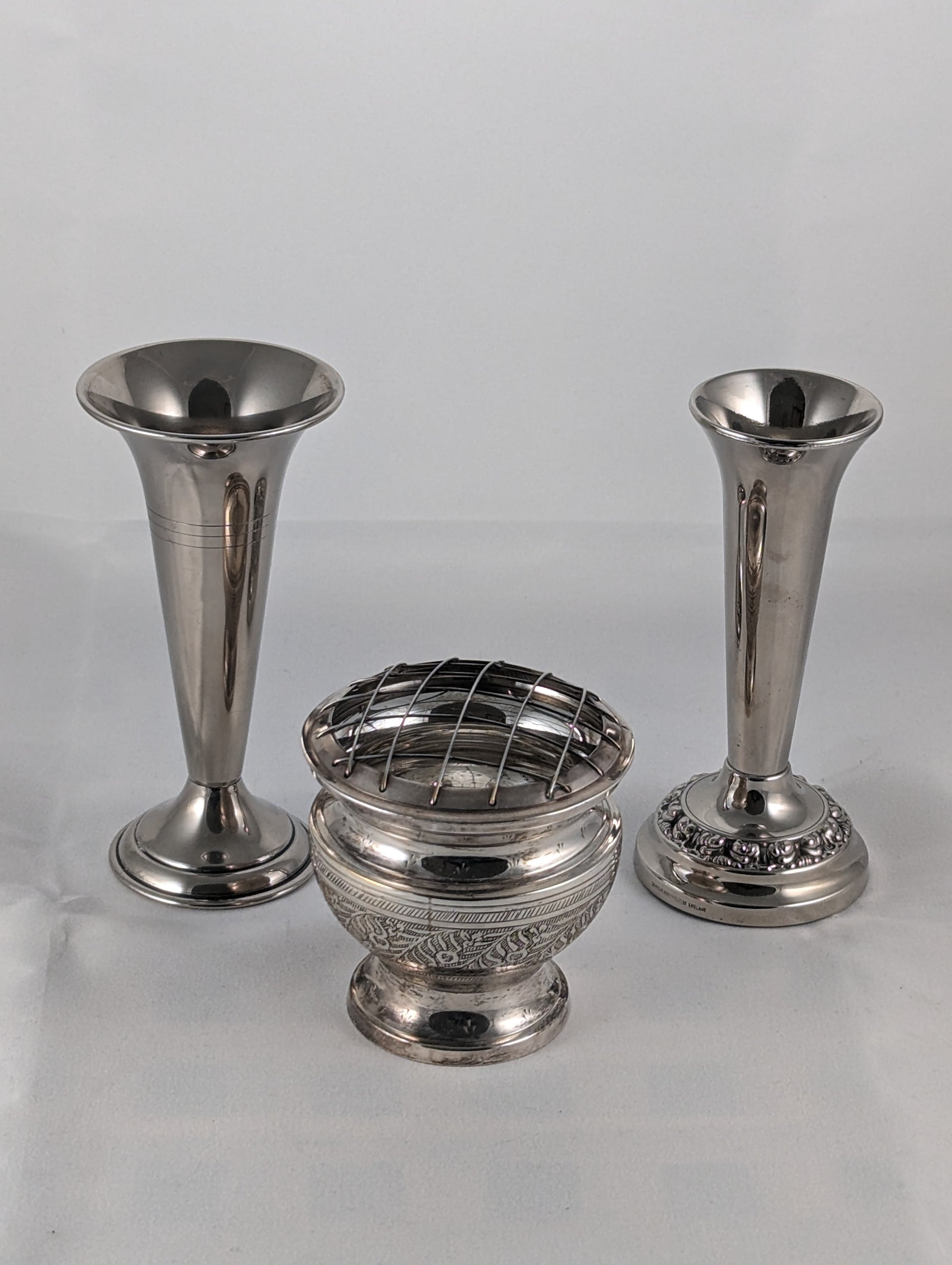Introducing our Vintage Silver Plated Vases collection! Add a touch of timeless elegance to your home decor with these exquisite pieces. Whether you're looking to enhance your living space or create a heartfelt memorial, these silver plated vases and memorial pot are perfect companions.