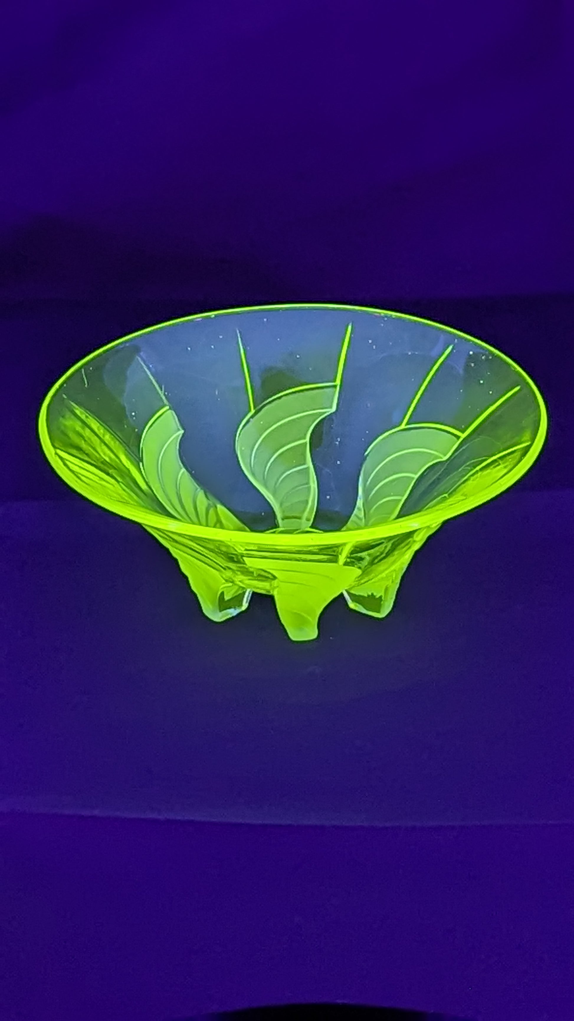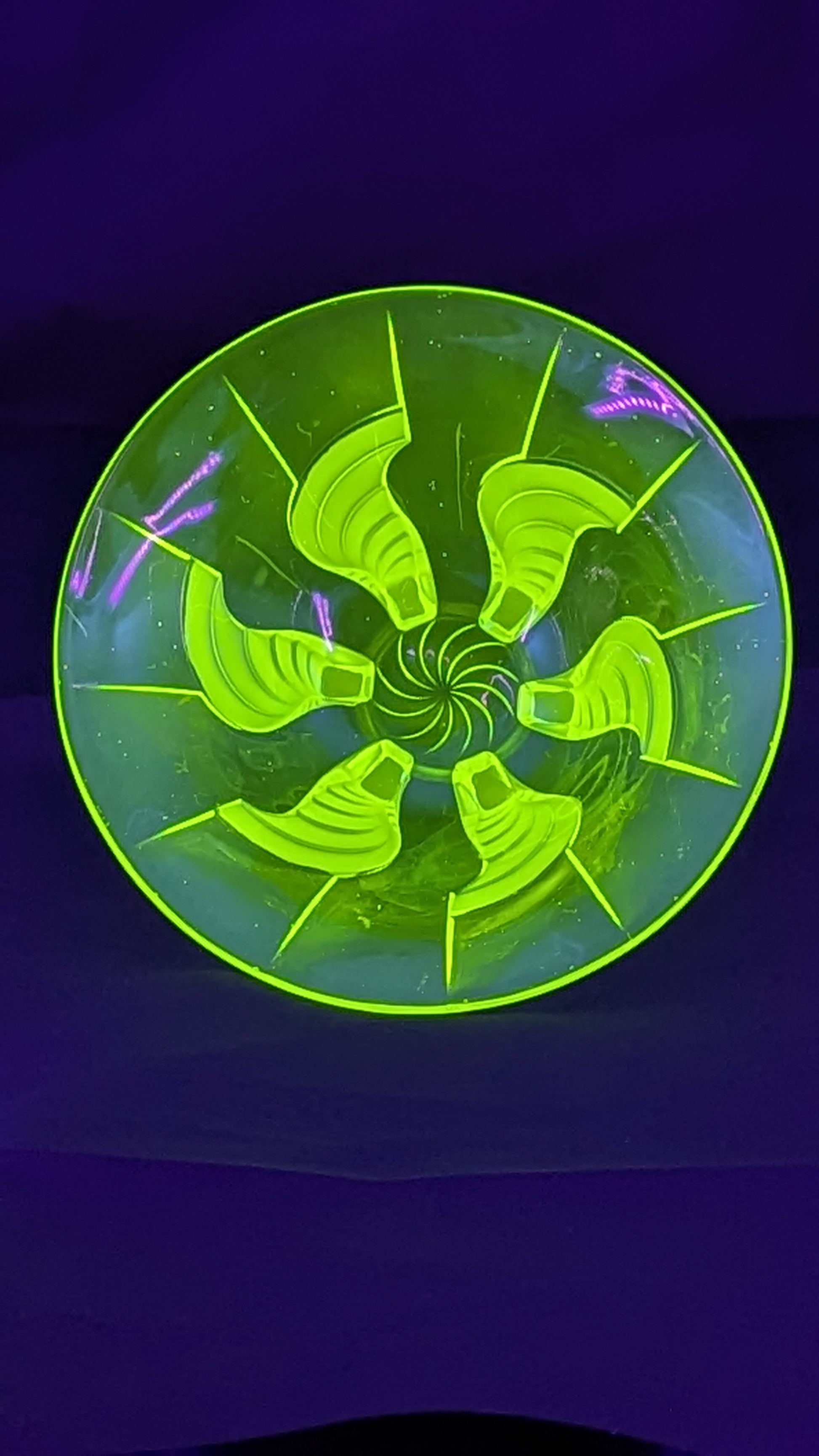 Crafted from the finest vaseline glass, this bowl boasts a unique allure that is sure to captivate your senses. What makes it truly mesmerizing is the presence of small traces of uranium, delicately infused within the glass. When bathed in the soft glow of UV light, this enchanting bowl comes to life, emanating a gentle, ethereal radiance that will leave you breathless.
