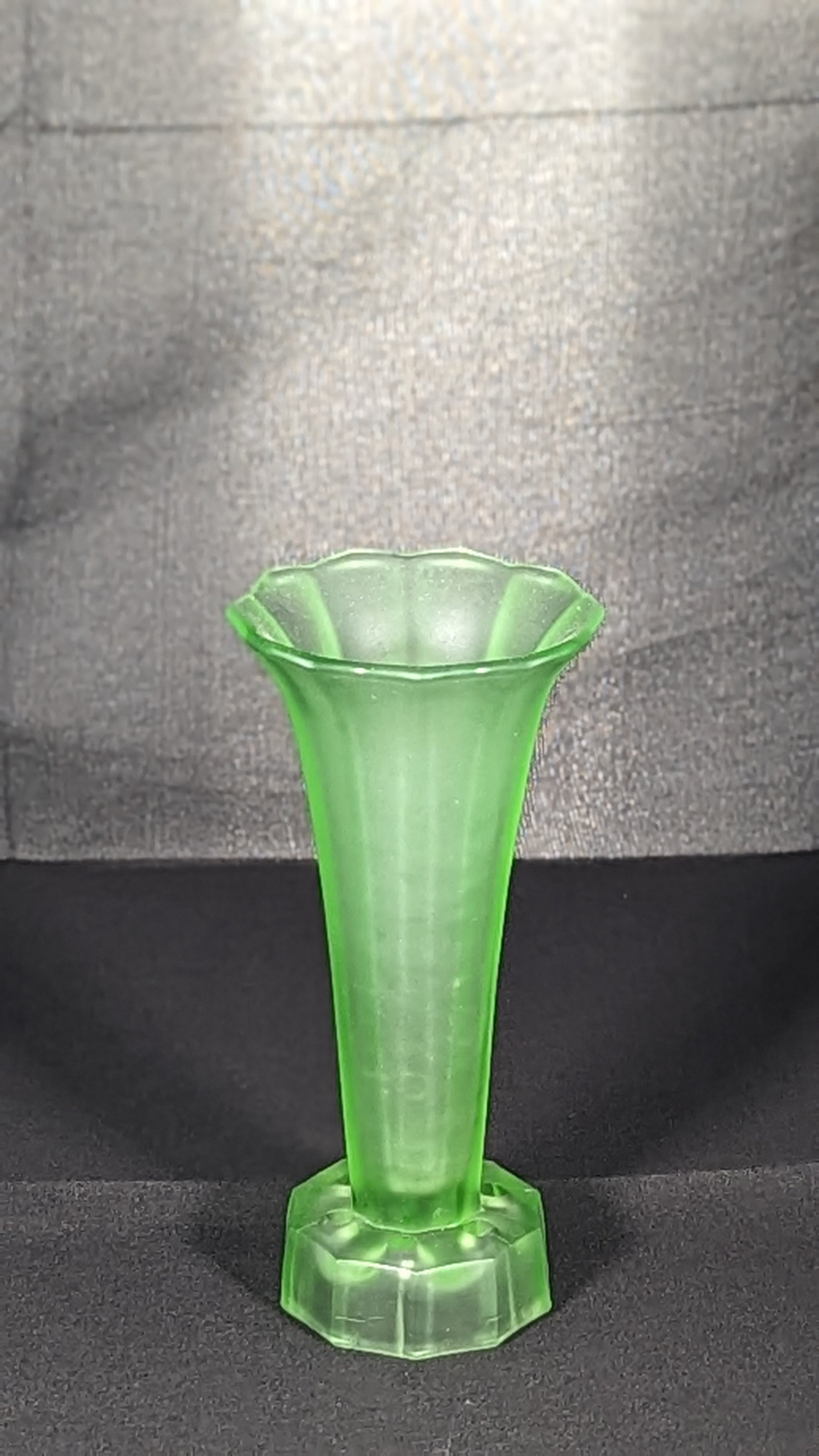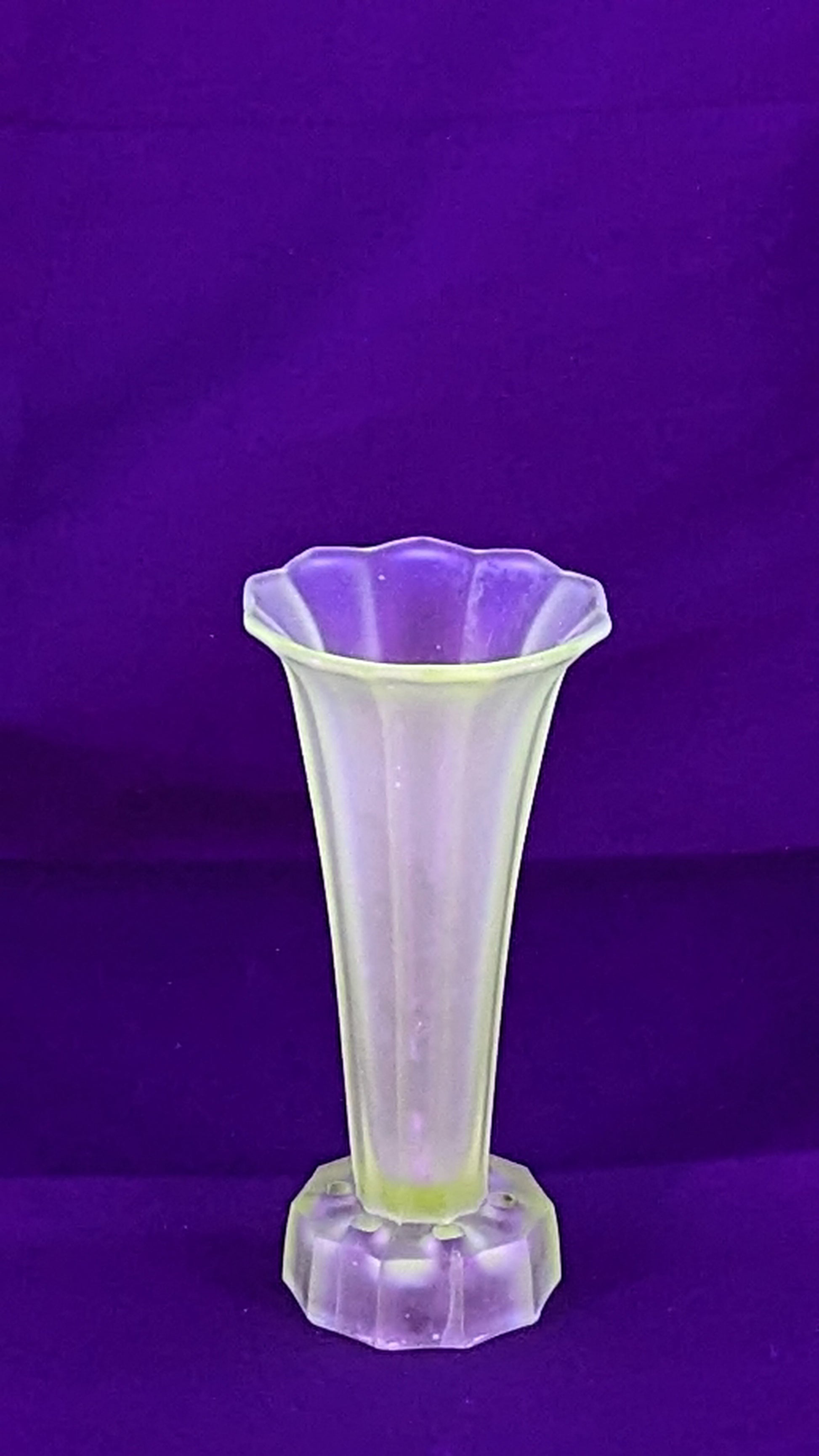 Introducing our enchanting Vintage Vaseline Glass Vase, a true treasure that exudes timeless elegance and romance. This exquisite piece is a testament to the craftsmanship of yesteryears, capturing hearts with its mesmerizing glow and captivating allure.