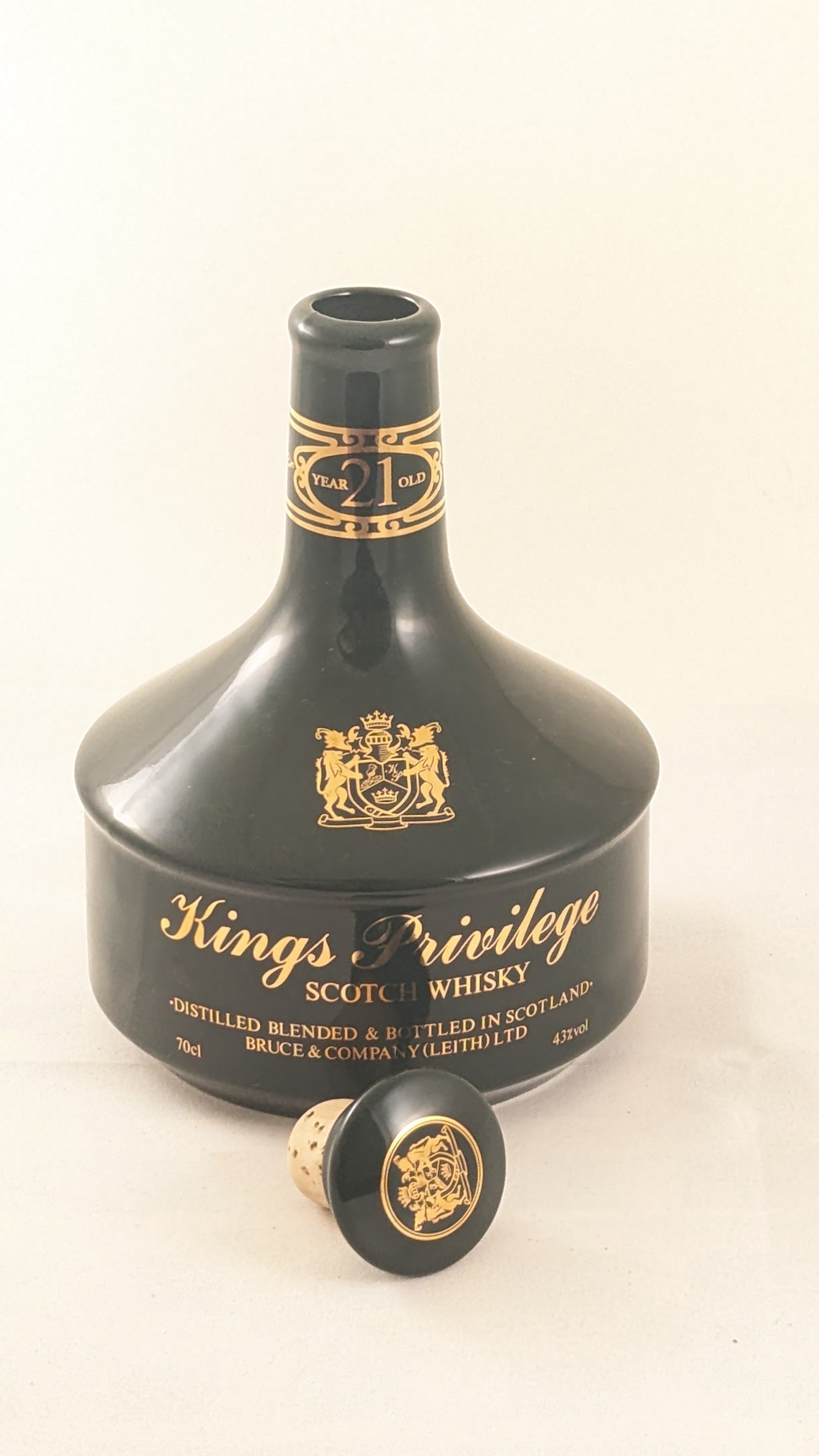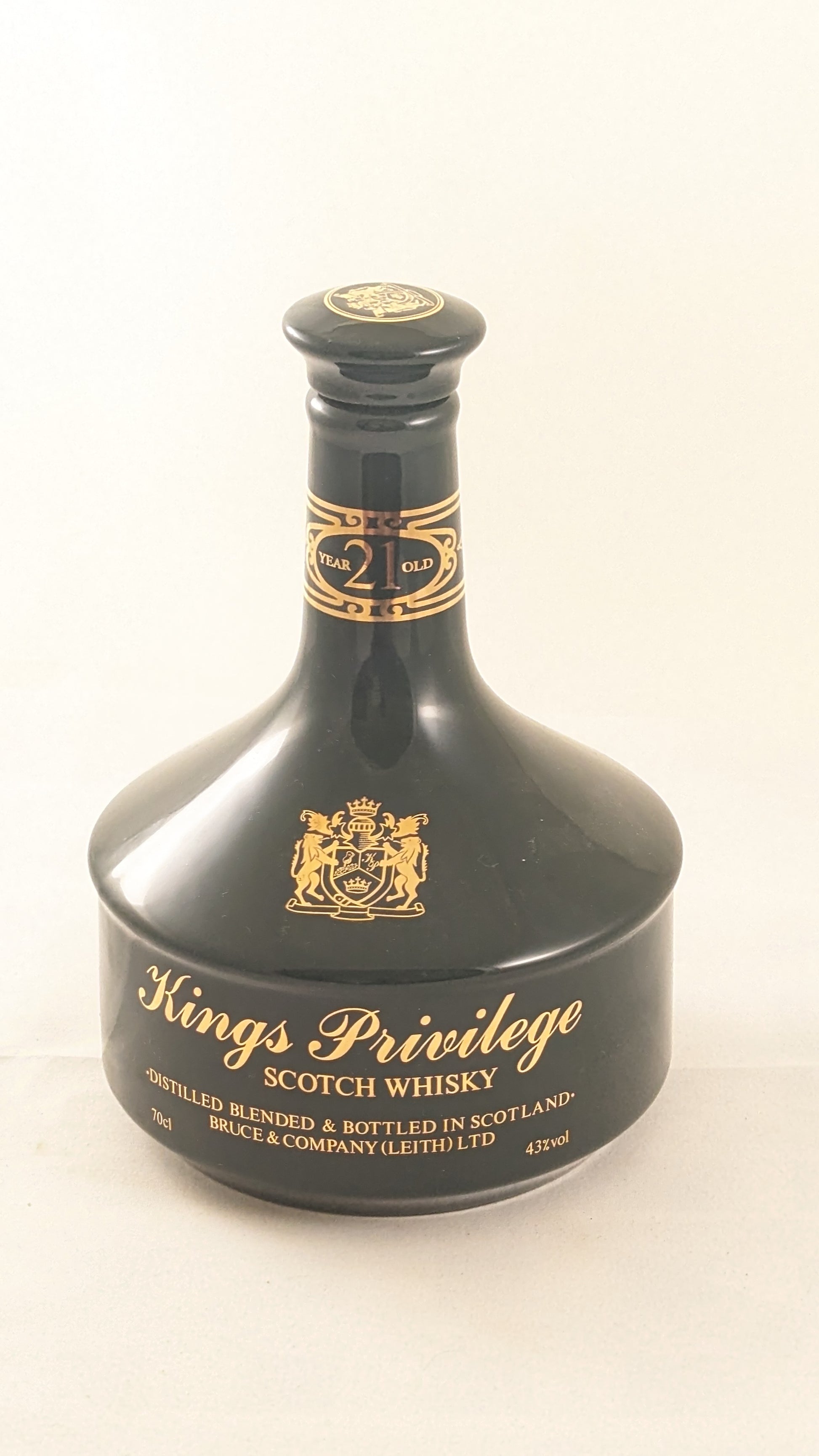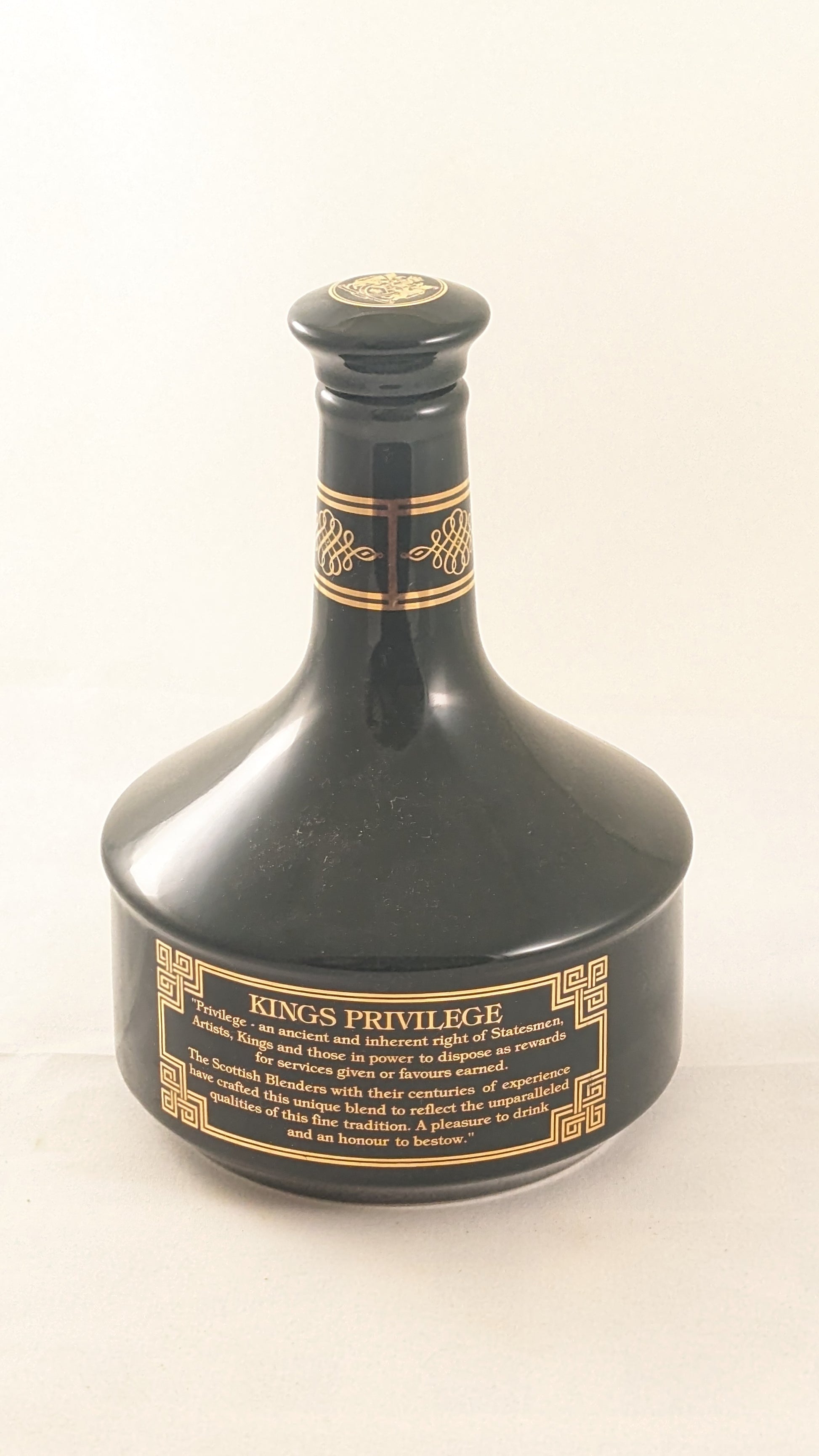 Once home to the exquisite 21-year-old blended whisky, Kings Privilege, this empty vessel now stands as a testament to the rich history of whisky craftsmanship. Impeccably preserved, this decanter is in excellent condition, ready to be filled with your favorite golden elixir.