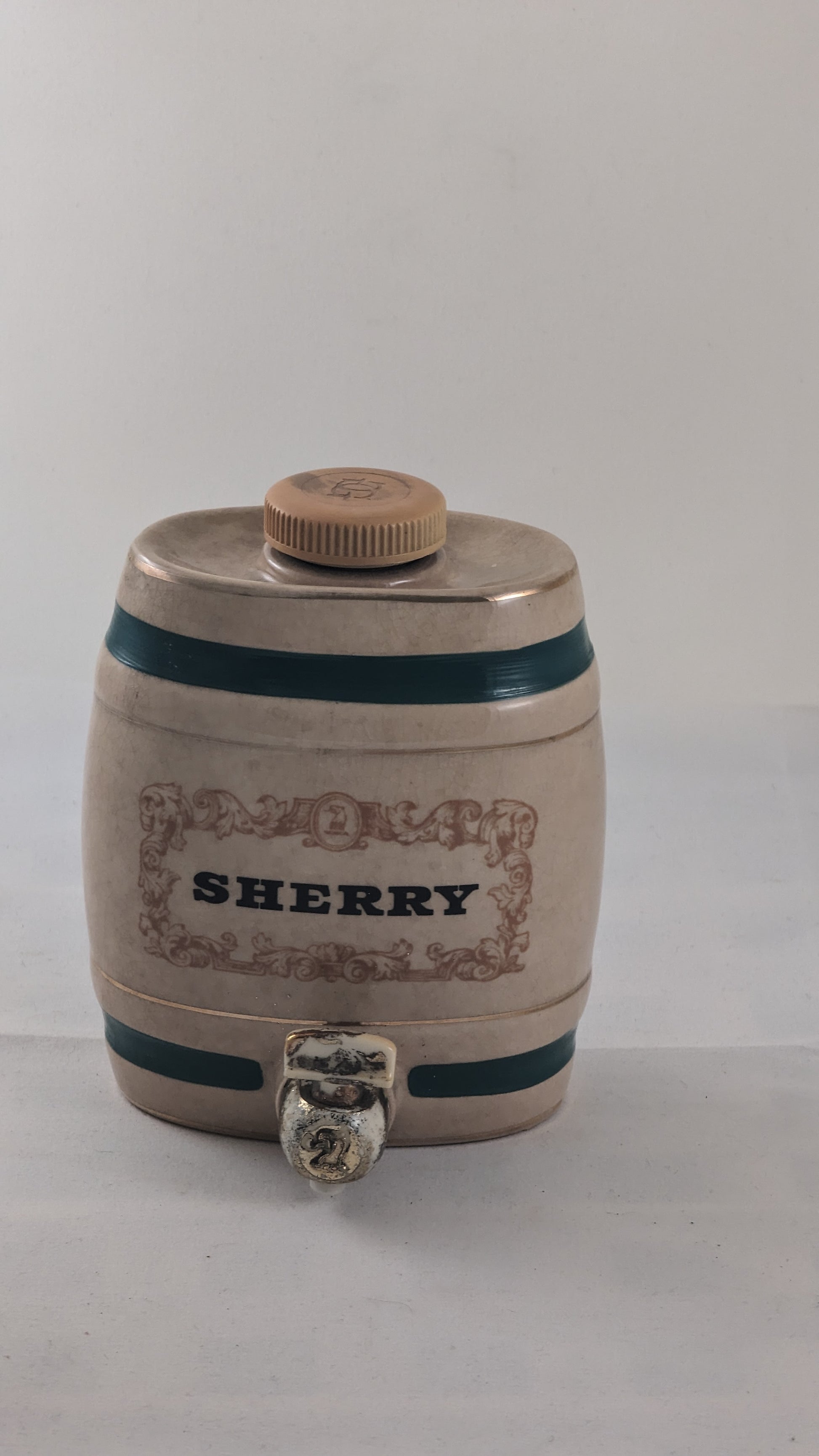 Introducing the Vintage Wade Royal Victoria Ceramic Barrel Sherry Decanter - a true gem from the late 1950s! This exquisite piece exudes timeless elegance and is ready to add a touch of sophistication to your collection or home bar.