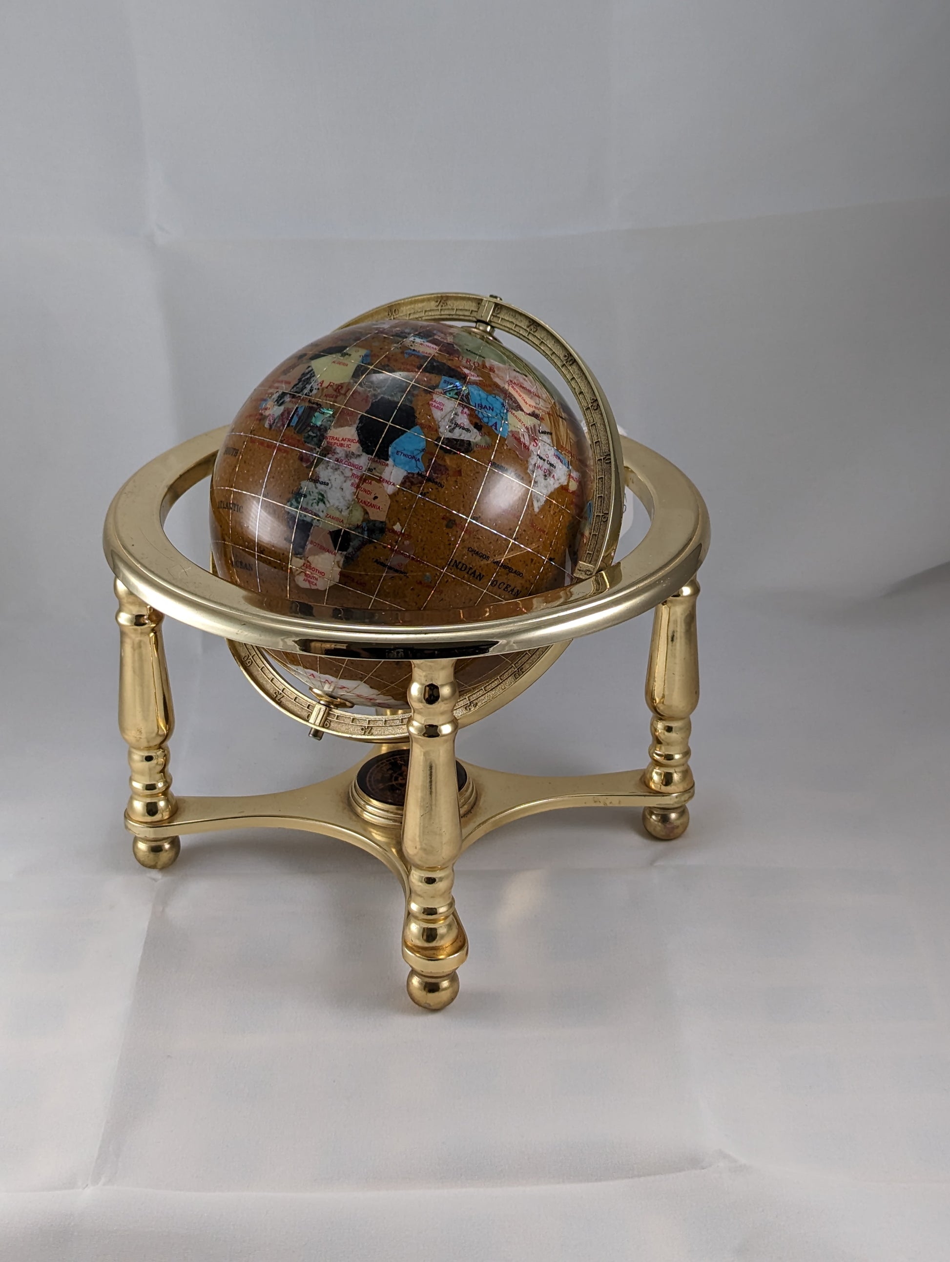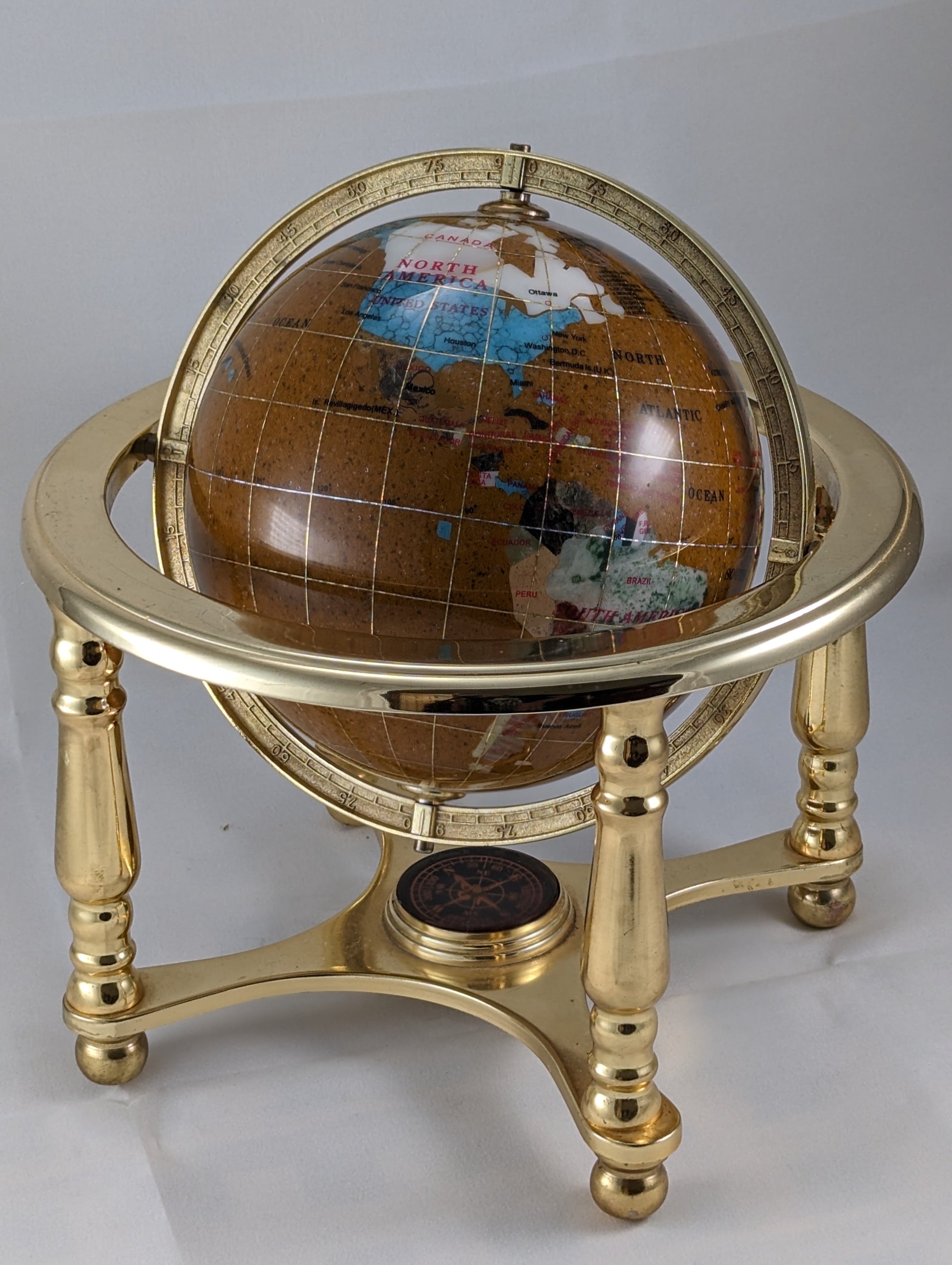 Explore the world from the comfort of your own home with our exquisite World Globe and Compass Collectable. Crafted with meticulous attention to detail, this captivating piece is made from a rich, brown semi-precious stone that exudes an air of elegance and sophistication.