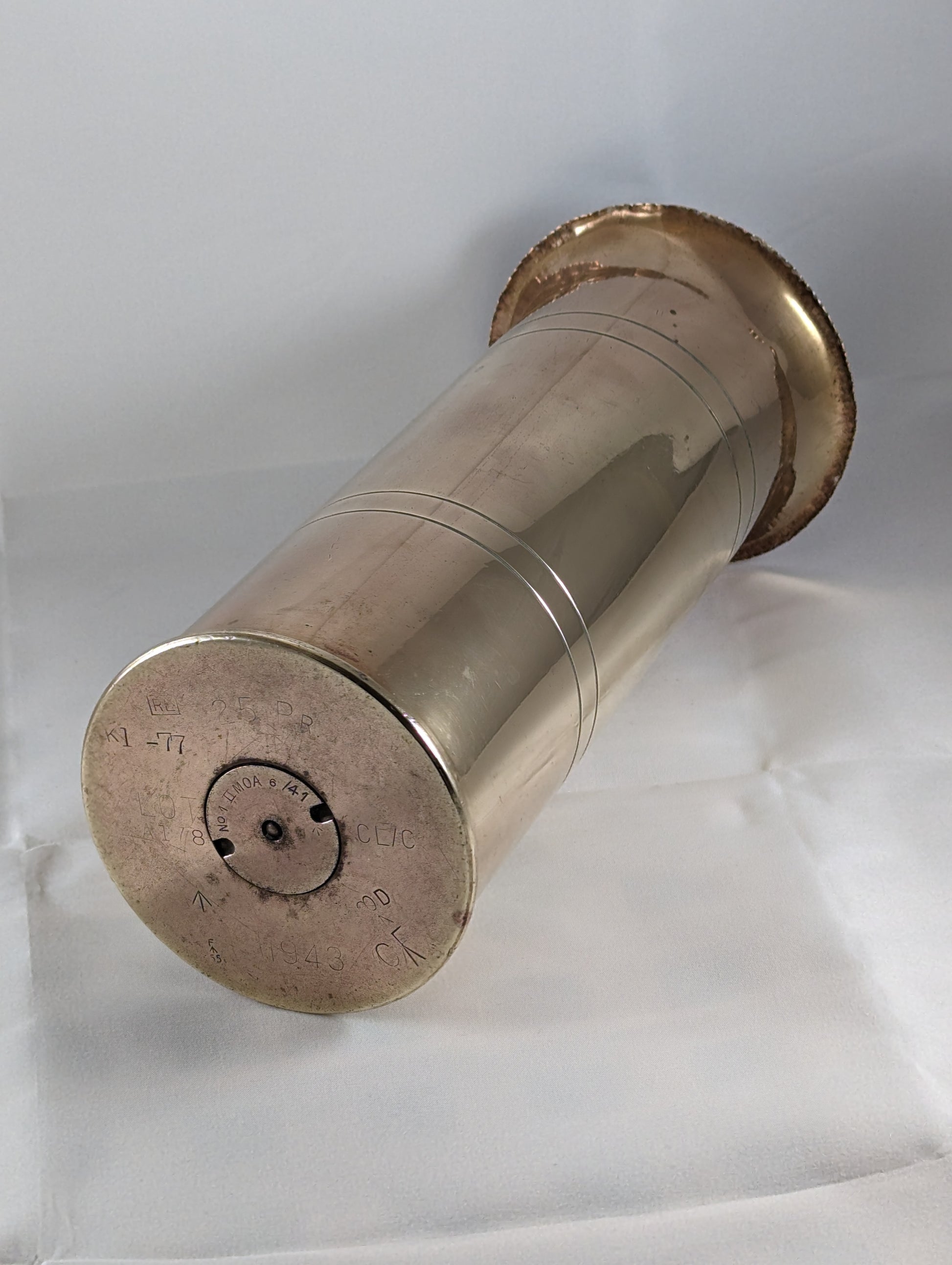 Whether you're a history enthusiast, a collector of unique pieces, or simply someone who appreciates the beauty of repurposed items, this Trench Art Vase is sure to captivate your heart. Its rustic charm and vintage appeal make it a standout piece in any home decor.