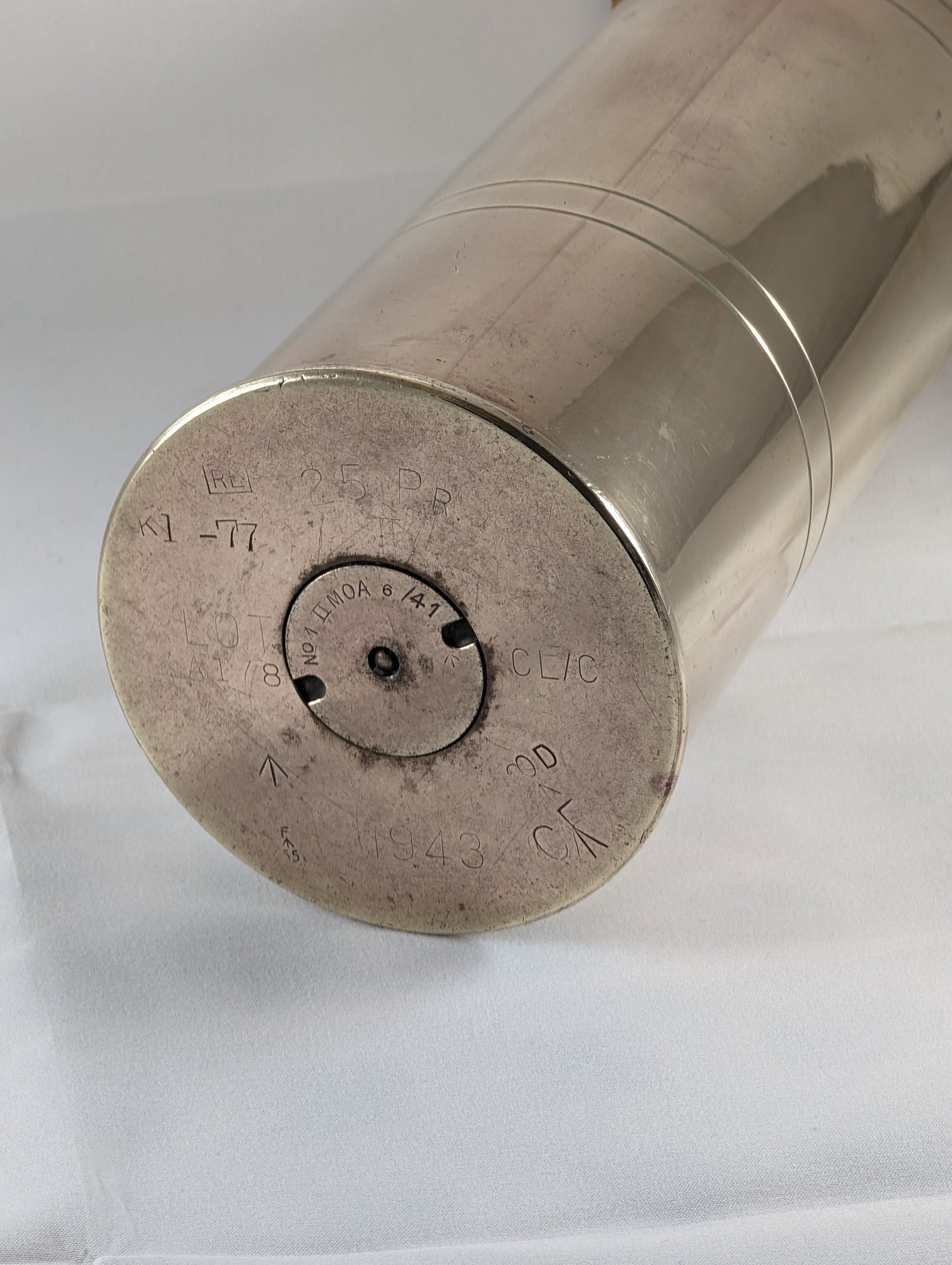 Imagine the stories this 25 Pounder Case could tell if it could speak! It witnessed the trials and triumphs of World War II, and now it stands as a testament to the resilience and creativity of its time. Each intricate detail on this vase showcases the dedication and skill of the artisan who transformed it into a true work of art.